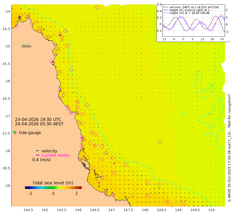 1cm/s -23T +11cm/s rms + 4cm/s -61T. GBRLSL 354m 3cm/s 83T +15cm/s rms + 2cm/s -84T. GBRLSH 32m 9cm/s 83T +15cm/s rms + 5cm/s -155T. GBRPPS 72m 4cm/s 74T +17cm/s rms + 13cm/s 115T. GBRMYR 223m 12cm/s 109T +18cm/s rms + 0cm/s -9T. NRSYON 29m 73cm Osprey Reef - West 98cm Stanley Island 66cm Pipon Islands 88cm Cape Melville 94cm Munro Reef 92cm Leggatt Island 101cm Normanby River 93cm Carter Reef 90cm Lizard Island (QLD) 94cm East Petherbridge Island 89cm North Direction Island 88cm Cape Flattery 82cm Ribbon Reef No.9 89cm Low Wooded Island 83cm Cape Bedford 48cm Endeavour River North 88cm Cooktown 80cm Cruiser Passage 91cm East Hope Island 89cm Bailay Creek 86cm Low Islets 89cm Port Douglas 88cm Palm Cove 90cm Yorkeys Knob 85cm Michaelmas Cay 71cm Euston Reef 91cm Cairns 84cm Green Island 84cm Fitzroy Island 86cm Sudbury Cay 89cm High Island 81cm Russell Island 92cm Peart Reef 86cm Nathan Reef 91cm Mourilyan Harbour 92cm Cowley Beach 101cm North Barnard Island 82cm Eddy Reef 120cm Beaver Reef 86cm Unnamed Reef No. 1 73cm Flinders Reef 94cm Clump Point 99cm Dunk Island 93cm Barnett Patches 101cm Goold Island 111cm Cardwell 94cm Britomart Reef 85cm Pith Reef 80cm Dip Reef 103cm Lucinda (Offshore) 104cm John Brewer Reef 97cm Albino Rock 94cm Shrimp Reef 78cm Jaguar Reef 107cm Townsville 102cm Cape Ferguson 107cm Stanley Reef 100cm Wallaby Reef 86cm Kennedy Reef