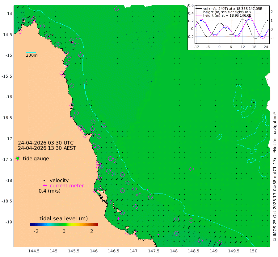 1cm/s 115T +11cm/s rms + 4cm/s -61T. GBRLSL 354m 6cm/s -152T +15cm/s rms + 2cm/s -84T. GBRLSH 32m 10cm/s -128T +15cm/s rms + 5cm/s -155T. GBRPPS 72m 5cm/s -134T +17cm/s rms + 13cm/s 115T. GBRMYR 223m 8cm/s -119T +18cm/s rms + 0cm/s -9T. NRSYON 29m -28cm Osprey Reef - West -45cm Stanley Island -9cm Pipon Islands -34cm Cape Melville -41cm Munro Reef -37cm Leggatt Island -48cm Normanby River -37cm Carter Reef -35cm Lizard Island (QLD) -45cm East Petherbridge Island -40cm North Direction Island -38cm Cape Flattery -36cm Ribbon Reef No.9 -37cm Low Wooded Island -38cm Cape Bedford -28cm Endeavour River North -35cm Cooktown -34cm Cruiser Passage -34cm East Hope Island -42cm Bailay Creek -33cm Low Islets -33cm Port Douglas -30cm Palm Cove -32cm Yorkeys Knob -37cm Michaelmas Cay -29cm Euston Reef -34cm Cairns -32cm Green Island -25cm Fitzroy Island -34cm Sudbury Cay -28cm High Island -32cm Russell Island -36cm Peart Reef -29cm Nathan Reef -34cm Mourilyan Harbour -37cm Cowley Beach -45cm North Barnard Island -31cm Eddy Reef -49cm Beaver Reef -31cm Unnamed Reef No. 1 -28cm Flinders Reef -35cm Clump Point -38cm Dunk Island -39cm Barnett Patches -37cm Goold Island -45cm Cardwell -29cm Britomart Reef -33cm Pith Reef -30cm Dip Reef -39cm Lucinda (Offshore) -42cm John Brewer Reef -38cm Albino Rock -37cm Shrimp Reef -28cm Jaguar Reef -39cm Townsville -37cm Cape Ferguson -47cm Stanley Reef -49cm Wallaby Reef -27cm Kennedy Reef
