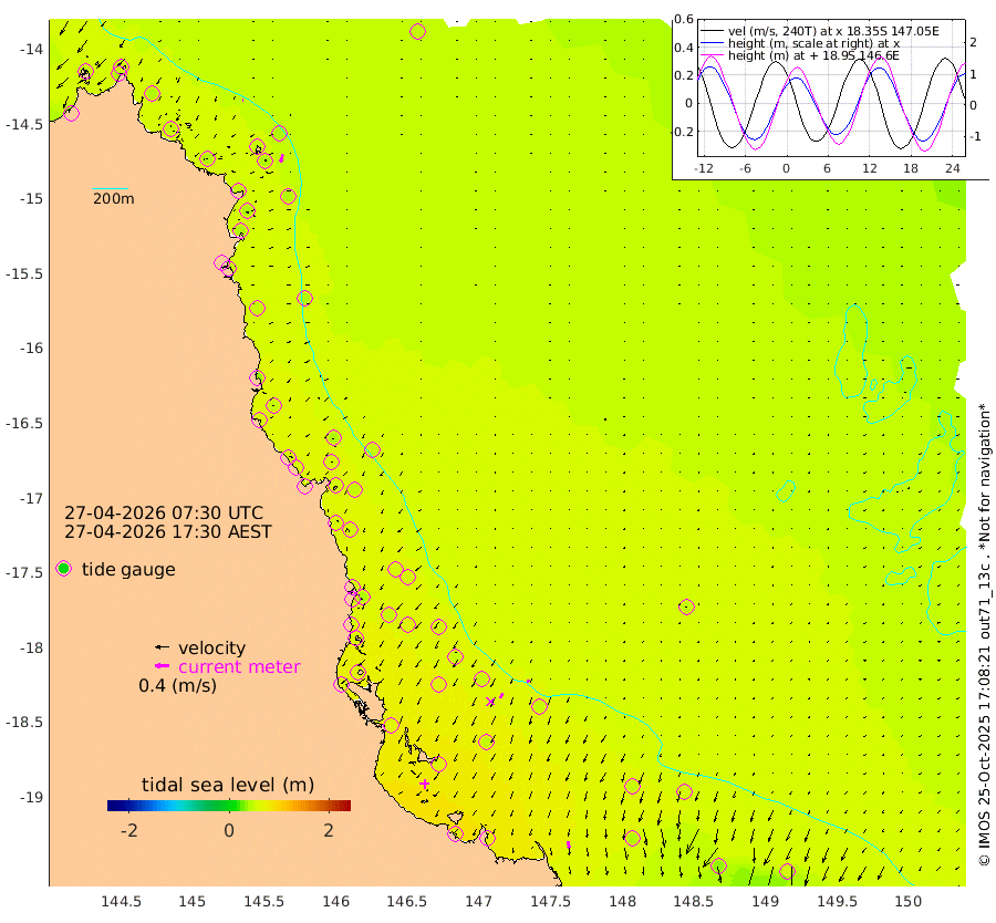 2cm/s 116T +11cm/s rms + 4cm/s -61T. GBRLSL 354m 23cm/s -167T +15cm/s rms + 2cm/s -84T. GBRLSH 32m 16cm/s -154T +15cm/s rms + 5cm/s -155T. GBRPPS 72m 8cm/s -156T +17cm/s rms + 13cm/s 115T. GBRMYR 223m 20cm/s 174T +18cm/s rms + 0cm/s -9T. NRSYON 29m 45cm Osprey Reef - West 46cm Stanley Island 55cm Pipon Islands 43cm Cape Melville 43cm Munro Reef 47cm Leggatt Island 51cm Normanby River 41cm Carter Reef 46cm Lizard Island (QLD) 45cm East Petherbridge Island 45cm North Direction Island 47cm Cape Flattery 44cm Ribbon Reef No.9 43cm Low Wooded Island 44cm Cape Bedford 24cm Endeavour River North 48cm Cooktown 45cm Cruiser Passage 49cm East Hope Island 33cm Bailay Creek 46cm Low Islets 53cm Port Douglas 57cm Palm Cove 55cm Yorkeys Knob 45cm Michaelmas Cay 51cm Euston Reef 55cm Cairns 55cm Green Island 53cm Fitzroy Island 49cm Sudbury Cay 55cm High Island 55cm Russell Island 55cm Peart Reef 53cm Nathan Reef 53cm Mourilyan Harbour 58cm Cowley Beach 39cm North Barnard Island 51cm Eddy Reef 64cm Beaver Reef 55cm Unnamed Reef No. 1 48cm Flinders Reef 59cm Clump Point 58cm Dunk Island 49cm Barnett Patches 66cm Goold Island 62cm Cardwell 67cm Britomart Reef 50cm Pith Reef 50cm Dip Reef 65cm Lucinda (Offshore) 52cm John Brewer Reef 66cm Albino Rock 48cm Shrimp Reef 54cm Jaguar Reef 73cm Townsville 69cm Cape Ferguson 42cm Stanley Reef 35cm Wallaby Reef 56cm Kennedy Reef