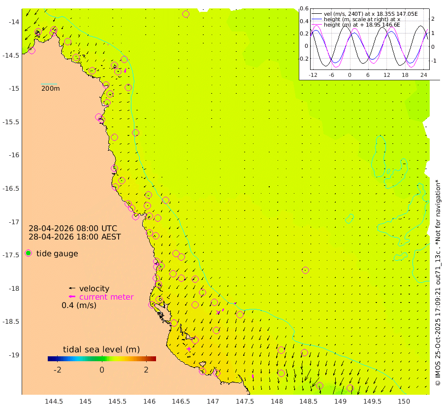 3cm/s 118T +11cm/s rms + 4cm/s -61T. GBRLSL 354m 25cm/s -167T +15cm/s rms + 2cm/s -84T. GBRLSH 32m 17cm/s -153T +15cm/s rms + 5cm/s -155T. GBRPPS 72m 8cm/s -154T +17cm/s rms + 13cm/s 115T. GBRMYR 223m 21cm/s 174T +18cm/s rms + 0cm/s -9T. NRSYON 29m 53cm Osprey Reef - West 52cm Stanley Island 53cm Pipon Islands 47cm Cape Melville 49cm Munro Reef 52cm Leggatt Island 57cm Normanby River 45cm Carter Reef 51cm Lizard Island (QLD) 52cm East Petherbridge Island 51cm North Direction Island 54cm Cape Flattery 51cm Ribbon Reef No.9 51cm Low Wooded Island 50cm Cape Bedford 32cm Endeavour River North 55cm Cooktown 52cm Cruiser Passage 56cm East Hope Island 39cm Bailay Creek 52cm Low Islets 59cm Port Douglas 63cm Palm Cove 60cm Yorkeys Knob 51cm Michaelmas Cay 61cm Euston Reef 61cm Cairns 62cm Green Island 57cm Fitzroy Island 56cm Sudbury Cay 60cm High Island 61cm Russell Island 60cm Peart Reef 59cm Nathan Reef 60cm Mourilyan Harbour 65cm Cowley Beach 43cm North Barnard Island 60cm Eddy Reef 73cm Beaver Reef 62cm Unnamed Reef No. 1 55cm Flinders Reef 65cm Clump Point 63cm Dunk Island 56cm Barnett Patches 72cm Goold Island 68cm Cardwell 72cm Britomart Reef 59cm Pith Reef 58cm Dip Reef 71cm Lucinda (Offshore) 55cm John Brewer Reef 74cm Albino Rock 55cm Shrimp Reef 62cm Jaguar Reef 79cm Townsville 75cm Cape Ferguson 47cm Stanley Reef 39cm Wallaby Reef 62cm Kennedy Reef