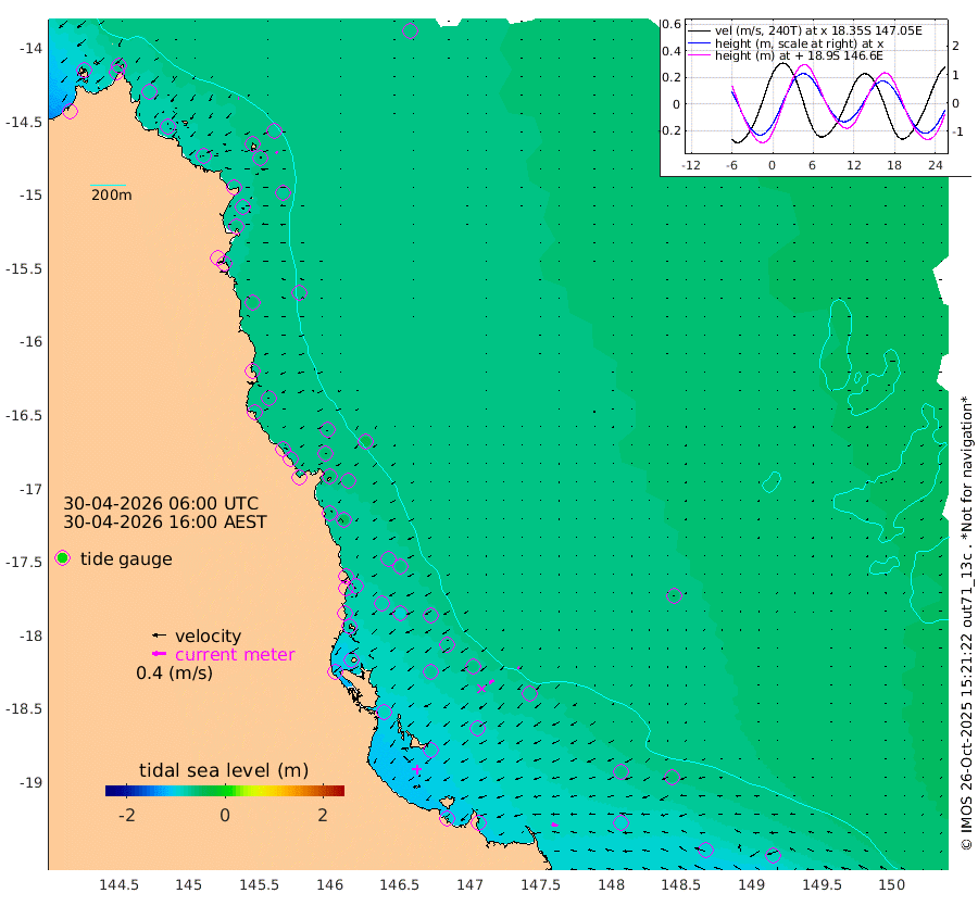 2cm/s 104T +11cm/s rms + 4cm/s -61T. GBRLSL 354m 7cm/s -142T +15cm/s rms + 2cm/s -84T. GBRLSH 32m 16cm/s -121T +15cm/s rms + 5cm/s -155T. GBRPPS 72m 5cm/s -123T +17cm/s rms + 13cm/s 115T. GBRMYR 223m 18cm/s -75T +18cm/s rms + 0cm/s -9T. NRSYON 29m -63cm Osprey Reef - West -77cm Stanley Island -64cm Pipon Islands -71cm Cape Melville -75cm Munro Reef -79cm Leggatt Island -92cm Normanby River -69cm Carter Reef -67cm Lizard Island (QLD) -74cm East Petherbridge Island -66cm North Direction Island -73cm Cape Flattery -69cm Ribbon Reef No.9 -76cm Low Wooded Island -62cm Cape Bedford -43cm Endeavour River North -69cm Cooktown -65cm Cruiser Passage -55cm East Hope Island -68cm Bailay Creek -64cm Low Islets -70cm Port Douglas -69cm Palm Cove -69cm Yorkeys Knob -65cm Michaelmas Cay -40cm Euston Reef -73cm Cairns -58cm Green Island -58cm Fitzroy Island -65cm Sudbury Cay -62cm High Island -48cm Russell Island -68cm Peart Reef -64cm Nathan Reef -74cm Mourilyan Harbour -70cm Cowley Beach -80cm North Barnard Island -76cm Eddy Reef -95cm Beaver Reef -68cm Unnamed Reef No. 1 -55cm Flinders Reef -77cm Clump Point -81cm Dunk Island -68cm Barnett Patches -83cm Goold Island -100cm Cardwell -69cm Britomart Reef -61cm Pith Reef -69cm Dip Reef -88cm Lucinda (Offshore) -78cm John Brewer Reef -85cm Albino Rock -66cm Shrimp Reef -56cm Jaguar Reef -91cm Townsville -84cm Cape Ferguson -93cm Stanley Reef -93cm Wallaby Reef -84cm Kennedy Reef