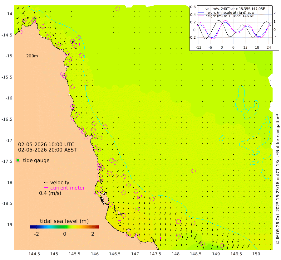 1cm/s 130T +11cm/s rms + 4cm/s -61T. GBRLSL 354m 21cm/s -169T +15cm/s rms + 2cm/s -84T. GBRLSH 32m 14cm/s -152T +15cm/s rms + 5cm/s -155T. GBRPPS 72m 6cm/s -145T +17cm/s rms + 13cm/s 115T. GBRMYR 223m 20cm/s 168T +18cm/s rms + 0cm/s -9T. NRSYON 29m 47cm Osprey Reef - West 48cm Stanley Island 29cm Pipon Islands 39cm Cape Melville 48cm Munro Reef 46cm Leggatt Island 51cm Normanby River 43cm Carter Reef 45cm Lizard Island (QLD) 51cm East Petherbridge Island 48cm North Direction Island 53cm Cape Flattery 50cm Ribbon Reef No.9 51cm Low Wooded Island 48cm Cape Bedford 34cm Endeavour River North 49cm Cooktown 51cm Cruiser Passage 55cm East Hope Island 42cm Bailay Creek 46cm Low Islets 52cm Port Douglas 54cm Palm Cove 47cm Yorkeys Knob 49cm Michaelmas Cay 65cm Euston Reef 53cm Cairns 55cm Green Island 49cm Fitzroy Island 52cm Sudbury Cay 46cm High Island 52cm Russell Island 49cm Peart Reef 45cm Nathan Reef 53cm Mourilyan Harbour 58cm Cowley Beach 38cm North Barnard Island 61cm Eddy Reef 69cm Beaver Reef 54cm Unnamed Reef No. 1 53cm Flinders Reef 57cm Clump Point 54cm Dunk Island 51cm Barnett Patches 59cm Goold Island 59cm Cardwell 57cm Britomart Reef 56cm Pith Reef 54cm Dip Reef 61cm Lucinda (Offshore) 44cm John Brewer Reef 69cm Albino Rock 54cm Shrimp Reef 60cm Jaguar Reef 66cm Townsville 63cm Cape Ferguson 41cm Stanley Reef 39cm Wallaby Reef 51cm Kennedy Reef