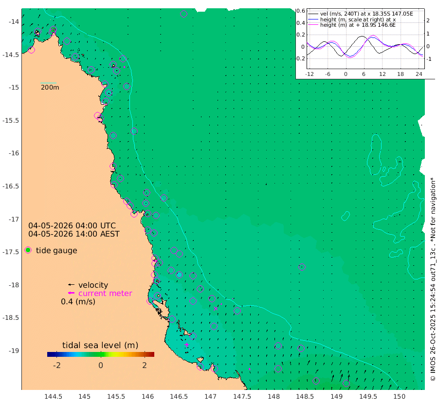 1cm/s 80T +11cm/s rms + 4cm/s -61T. GBRLSL 354m 9cm/s 7T +15cm/s rms + 2cm/s -84T. GBRLSH 32m 8cm/s 9T +15cm/s rms + 5cm/s -155T. GBRPPS 72m 3cm/s 35T +17cm/s rms + 13cm/s 115T. GBRMYR 223m 11cm/s -19T +18cm/s rms + 0cm/s -9T. NRSYON 29m -59cm Osprey Reef - West -65cm Stanley Island -25cm Pipon Islands -56cm Cape Melville -67cm Munro Reef -63cm Leggatt Island -64cm Normanby River -65cm Carter Reef -62cm Lizard Island (QLD) -66cm East Petherbridge Island -62cm North Direction Island -70cm Cape Flattery -68cm Ribbon Reef No.9 -76cm Low Wooded Island -61cm Cape Bedford -41cm Endeavour River North -65cm Cooktown -68cm Cruiser Passage -75cm East Hope Island -60cm Bailay Creek -64cm Low Islets -66cm Port Douglas -68cm Palm Cove -64cm Yorkeys Knob -64cm Michaelmas Cay -69cm Euston Reef -67cm Cairns -68cm Green Island -65cm Fitzroy Island -68cm Sudbury Cay -63cm High Island -66cm Russell Island -66cm Peart Reef -62cm Nathan Reef -66cm Mourilyan Harbour -67cm Cowley Beach -59cm North Barnard Island -71cm Eddy Reef -90cm Beaver Reef -67cm Unnamed Reef No. 1 -67cm Flinders Reef -69cm Clump Point -70cm Dunk Island -66cm Barnett Patches -71cm Goold Island -71cm Cardwell -70cm Britomart Reef -67cm Pith Reef -71cm Dip Reef -71cm Lucinda (Offshore) -67cm John Brewer Reef -75cm Albino Rock -70cm Shrimp Reef -64cm Jaguar Reef -74cm Townsville -71cm Cape Ferguson -58cm Stanley Reef -52cm Wallaby Reef -53cm Kennedy Reef