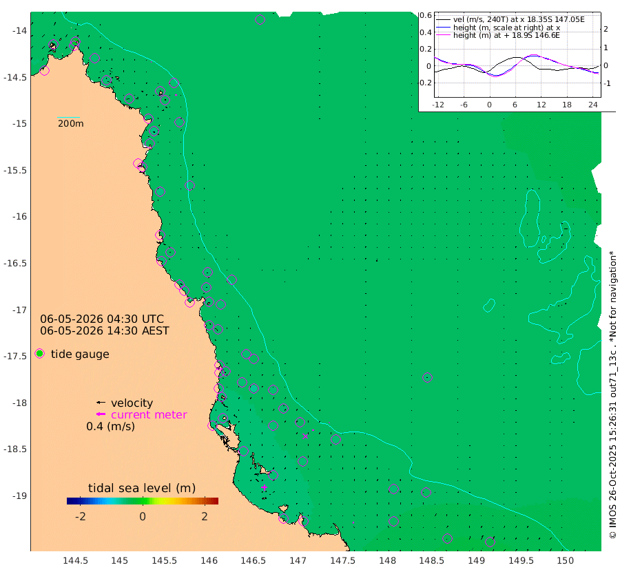 1cm/s 90T +11cm/s rms + 4cm/s -61T. GBRLSL 354m 5cm/s -1T +15cm/s rms + 2cm/s -84T. GBRLSH 32m 4cm/s 2T +15cm/s rms + 5cm/s -155T. GBRPPS 72m 1cm/s 56T +17cm/s rms + 13cm/s 115T. GBRMYR 223m 5cm/s -22T +18cm/s rms + 0cm/s -9T. NRSYON 29m -48cm Osprey Reef - West -54cm Stanley Island -18cm Pipon Islands -45cm Cape Melville -57cm Munro Reef -53cm Leggatt Island -54cm Normanby River -60cm Carter Reef -51cm Lizard Island (QLD) -52cm East Petherbridge Island -48cm North Direction Island -57cm Cape Flattery -58cm Ribbon Reef No.9 -67cm Low Wooded Island -47cm Cape Bedford -29cm Endeavour River North -53cm Cooktown -58cm Cruiser Passage -60cm East Hope Island -51cm Bailay Creek -51cm Low Islets -53cm Port Douglas -55cm Palm Cove -55cm Yorkeys Knob -53cm Michaelmas Cay -49cm Euston Reef -54cm Cairns -57cm Green Island -55cm Fitzroy Island -56cm Sudbury Cay -51cm High Island -52cm Russell Island -56cm Peart Reef -52cm Nathan Reef -54cm Mourilyan Harbour -52cm Cowley Beach -50cm North Barnard Island -55cm Eddy Reef -75cm Beaver Reef -54cm Unnamed Reef No. 1 -56cm Flinders Reef -55cm Clump Point -59cm Dunk Island -54cm Barnett Patches -57cm Goold Island -56cm Cardwell -57cm Britomart Reef -52cm Pith Reef -60cm Dip Reef -56cm Lucinda (Offshore) -58cm John Brewer Reef -58cm Albino Rock -55cm Shrimp Reef -48cm Jaguar Reef -56cm Townsville -55cm Cape Ferguson -49cm Stanley Reef -42cm Wallaby Reef -32cm Kennedy Reef