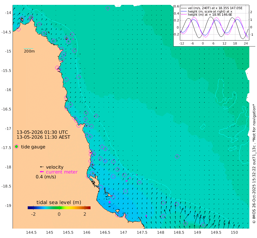 0cm/s 37T +11cm/s rms + 4cm/s -61T. GBRLSL 354m 14cm/s 12T +15cm/s rms + 2cm/s -84T. GBRLSH 32m 14cm/s 14T +15cm/s rms + 5cm/s -155T. GBRPPS 72m 7cm/s 16T +17cm/s rms + 13cm/s 115T. GBRMYR 223m 23cm/s -19T +18cm/s rms + 0cm/s -9T. NRSYON 29m -72cm Osprey Reef - West -82cm Stanley Island -60cm Pipon Islands -74cm Cape Melville -79cm Munro Reef -79cm Leggatt Island -88cm Normanby River -77cm Carter Reef -81cm Lizard Island (QLD) -80cm East Petherbridge Island -76cm North Direction Island -87cm Cape Flattery -80cm Ribbon Reef No.9 -92cm Low Wooded Island -76cm Cape Bedford -48cm Endeavour River North -83cm Cooktown -81cm Cruiser Passage -90cm East Hope Island -71cm Bailay Creek -79cm Low Islets -86cm Port Douglas -89cm Palm Cove -85cm Yorkeys Knob -80cm Michaelmas Cay -79cm Euston Reef -88cm Cairns -87cm Green Island -87cm Fitzroy Island -84cm Sudbury Cay -88cm High Island -86cm Russell Island -89cm Peart Reef -82cm Nathan Reef -87cm Mourilyan Harbour -91cm Cowley Beach -84cm North Barnard Island -85cm Eddy Reef -113cm Beaver Reef -86cm Unnamed Reef No. 1 -82cm Flinders Reef -93cm Clump Point -98cm Dunk Island -85cm Barnett Patches -102cm Goold Island -101cm Cardwell -99cm Britomart Reef -84cm Pith Reef -86cm Dip Reef -101cm Lucinda (Offshore) -95cm John Brewer Reef -102cm Albino Rock -90cm Shrimp Reef -84cm Jaguar Reef -108cm Townsville -104cm Cape Ferguson -84cm Stanley Reef -73cm Wallaby Reef -82cm Kennedy Reef