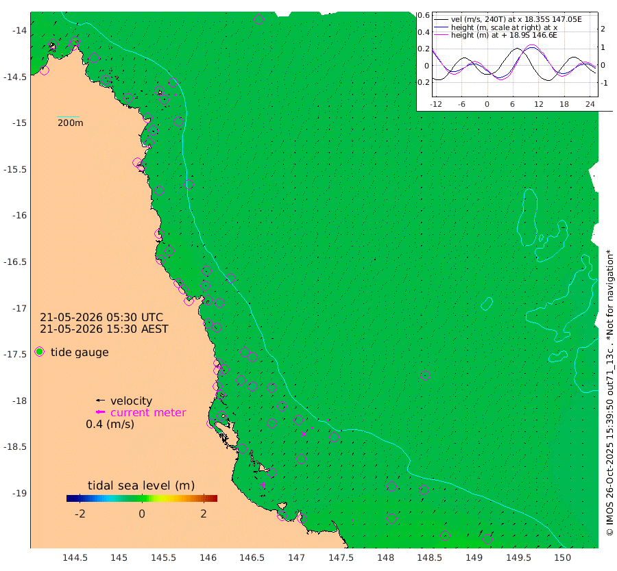 1cm/s 88T +11cm/s rms + 4cm/s -61T. GBRLSL 354m 7cm/s 13T +15cm/s rms + 2cm/s -84T. GBRLSH 32m 7cm/s 34T +15cm/s rms + 5cm/s -155T. GBRPPS 72m 4cm/s 60T +17cm/s rms + 13cm/s 115T. GBRMYR 223m 4cm/s 42T +18cm/s rms + 0cm/s -9T. NRSYON 29m -39cm Osprey Reef - West -28cm Stanley Island -2cm Pipon Islands -27cm Cape Melville -34cm Munro Reef -32cm Leggatt Island -26cm Normanby River -33cm Carter Reef -32cm Lizard Island (QLD) -33cm East Petherbridge Island -33cm North Direction Island -35cm Cape Flattery -41cm Ribbon Reef No.9 -46cm Low Wooded Island -31cm Cape Bedford -26cm Endeavour River North -34cm Cooktown -42cm Cruiser Passage -39cm East Hope Island -29cm Bailay Creek -34cm Low Islets -34cm Port Douglas -37cm Palm Cove -35cm Yorkeys Knob -32cm Michaelmas Cay -38cm Euston Reef -34cm Cairns -38cm Green Island -32cm Fitzroy Island -38cm Sudbury Cay -32cm High Island -33cm Russell Island -33cm Peart Reef -35cm Nathan Reef -34cm Mourilyan Harbour -32cm Cowley Beach -17cm North Barnard Island -43cm Eddy Reef -46cm Beaver Reef -39cm Unnamed Reef No. 1 -42cm Flinders Reef -34cm Clump Point -29cm Dunk Island -37cm Barnett Patches -32cm Goold Island -26cm Cardwell -35cm Britomart Reef -39cm Pith Reef -48cm Dip Reef -31cm Lucinda (Offshore) -24cm John Brewer Reef -37cm Albino Rock -34cm Shrimp Reef -34cm Jaguar Reef -30cm Townsville -30cm Cape Ferguson -22cm Stanley Reef -20cm Wallaby Reef -25cm Kennedy Reef