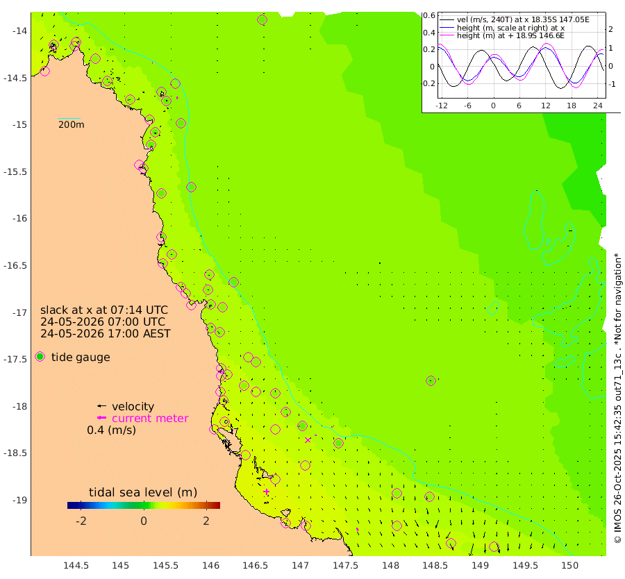 2cm/s 103T +11cm/s rms + 4cm/s -61T. GBRLSL 354m 10cm/s -171T +15cm/s rms + 2cm/s -84T. GBRLSH 32m 5cm/s 169T +15cm/s rms + 5cm/s -155T. GBRPPS 72m 3cm/s 172T +17cm/s rms + 13cm/s 115T. GBRMYR 223m 14cm/s 151T +18cm/s rms + 0cm/s -9T. NRSYON 29m 27cm Osprey Reef - West 37cm Stanley Island 49cm Pipon Islands 33cm Cape Melville 32cm Munro Reef 36cm Leggatt Island 43cm Normanby River 31cm Carter Reef 33cm Lizard Island (QLD) 31cm East Petherbridge Island 30cm North Direction Island 33cm Cape Flattery 28cm Ribbon Reef No.9 24cm Low Wooded Island 29cm Cape Bedford 14cm Endeavour River North 34cm Cooktown 27cm Cruiser Passage 30cm East Hope Island 24cm Bailay Creek 31cm Low Islets 37cm Port Douglas 38cm Palm Cove 39cm Yorkeys Knob 31cm Michaelmas Cay 24cm Euston Reef 39cm Cairns 34cm Green Island 36cm Fitzroy Island 32cm Sudbury Cay 37cm High Island 33cm Russell Island 39cm Peart Reef 37cm Nathan Reef 38cm Mourilyan Harbour 41cm Cowley Beach 39cm North Barnard Island 31cm Eddy Reef 45cm Beaver Reef 36cm Unnamed Reef No. 1 28cm Flinders Reef 43cm Clump Point 47cm Dunk Island 32cm Barnett Patches 49cm Goold Island 53cm Cardwell 47cm Britomart Reef 29cm Pith Reef 29cm Dip Reef 50cm Lucinda (Offshore) 46cm John Brewer Reef 46cm Albino Rock 34cm Shrimp Reef 35cm Jaguar Reef 56cm Townsville 53cm Cape Ferguson 42cm Stanley Reef 39cm Wallaby Reef 46cm Kennedy Reef