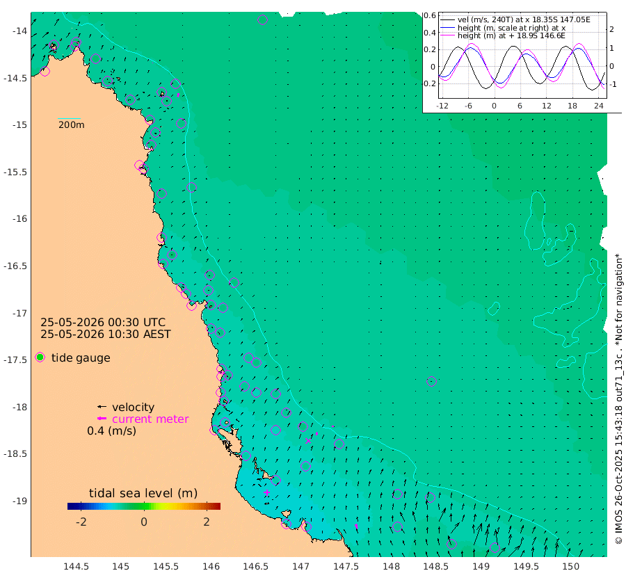 1cm/s 103T +11cm/s rms + 4cm/s -61T. GBRLSL 354m 16cm/s 14T +15cm/s rms + 2cm/s -84T. GBRLSH 32m 14cm/s 20T +15cm/s rms + 5cm/s -155T. GBRPPS 72m 7cm/s 20T +17cm/s rms + 13cm/s 115T. GBRMYR 223m 20cm/s -14T +18cm/s rms + 0cm/s -9T. NRSYON 29m -60cm Osprey Reef - West -62cm Stanley Island -57cm Pipon Islands -61cm Cape Melville -59cm Munro Reef -62cm Leggatt Island -69cm Normanby River -60cm Carter Reef -64cm Lizard Island (QLD) -62cm East Petherbridge Island -62cm North Direction Island -67cm Cape Flattery -65cm Ribbon Reef No.9 -74cm Low Wooded Island -61cm Cape Bedford -36cm Endeavour River North -66cm Cooktown -66cm Cruiser Passage -65cm East Hope Island -54cm Bailay Creek -60cm Low Islets -69cm Port Douglas -73cm Palm Cove -71cm Yorkeys Knob -62cm Michaelmas Cay -61cm Euston Reef -70cm Cairns -69cm Green Island -65cm Fitzroy Island -65cm Sudbury Cay -70cm High Island -66cm Russell Island -71cm Peart Reef -66cm Nathan Reef -70cm Mourilyan Harbour -74cm Cowley Beach -60cm North Barnard Island -68cm Eddy Reef -86cm Beaver Reef -71cm Unnamed Reef No. 1 -68cm Flinders Reef -75cm Clump Point -78cm Dunk Island -68cm Barnett Patches -83cm Goold Island -80cm Cardwell -83cm Britomart Reef -67cm Pith Reef -72cm Dip Reef -82cm Lucinda (Offshore) -73cm John Brewer Reef -82cm Albino Rock -70cm Shrimp Reef -70cm Jaguar Reef -89cm Townsville -86cm Cape Ferguson -71cm Stanley Reef -64cm Wallaby Reef -75cm Kennedy Reef