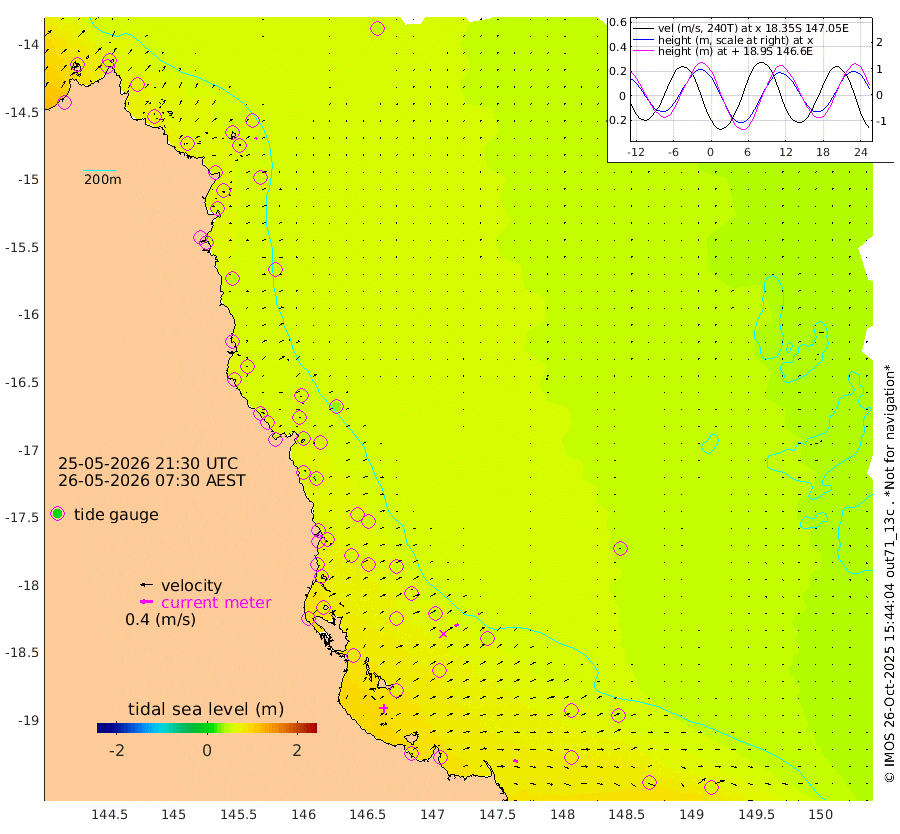 0cm/s -49T +11cm/s rms + 4cm/s -61T. GBRLSL 354m 5cm/s 41T +15cm/s rms + 2cm/s -84T. GBRLSH 32m 13cm/s 63T +15cm/s rms + 5cm/s -155T. GBRPPS 72m 4cm/s 67T +17cm/s rms + 13cm/s 115T. GBRMYR 223m 14cm/s 105T +18cm/s rms + 0cm/s -9T. NRSYON 29m 49cm Osprey Reef - West 72cm Stanley Island 61cm Pipon Islands 58cm Cape Melville 68cm Munro Reef 68cm Leggatt Island 87cm Normanby River 62cm Carter Reef 59cm Lizard Island (QLD) 68cm East Petherbridge Island 60cm North Direction Island 60cm Cape Flattery 57cm Ribbon Reef No.9 67cm Low Wooded Island 56cm Cape Bedford 36cm Endeavour River North 60cm Cooktown 54cm Cruiser Passage 52cm East Hope Island 70cm Bailay Creek 58cm Low Islets 62cm Port Douglas 60cm Palm Cove 62cm Yorkeys Knob 54cm Michaelmas Cay 34cm Euston Reef 64cm Cairns 53cm Green Island 48cm Fitzroy Island 55cm Sudbury Cay 54cm High Island 47cm Russell Island 62cm Peart Reef 58cm Nathan Reef 63cm Mourilyan Harbour 64cm Cowley Beach 72cm North Barnard Island 59cm Eddy Reef 87cm Beaver Reef 57cm Unnamed Reef No. 1 39cm Flinders Reef 66cm Clump Point 72cm Dunk Island 64cm Barnett Patches 72cm Goold Island 87cm Cardwell 63cm Britomart Reef 51cm Pith Reef 51cm Dip Reef 76cm Lucinda (Offshore) 70cm John Brewer Reef 74cm Albino Rock 57cm Shrimp Reef 46cm Jaguar Reef 80cm Townsville 74cm Cape Ferguson 80cm Stanley Reef 73cm Wallaby Reef 55cm Kennedy Reef