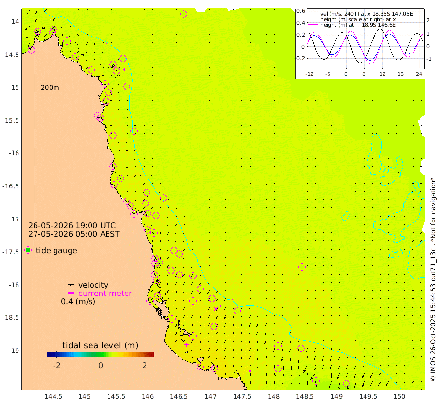 1cm/s -81T +11cm/s rms + 4cm/s -61T. GBRLSL 354m 16cm/s -165T +15cm/s rms + 2cm/s -84T. GBRLSH 32m 13cm/s -154T +15cm/s rms + 5cm/s -155T. GBRPPS 72m 6cm/s -151T +17cm/s rms + 13cm/s 115T. GBRMYR 223m 15cm/s 173T +18cm/s rms + 0cm/s -9T. NRSYON 29m 47cm Osprey Reef - West 48cm Stanley Island 43cm Pipon Islands 48cm Cape Melville 48cm Munro Reef 47cm Leggatt Island 53cm Normanby River 48cm Carter Reef 50cm Lizard Island (QLD) 55cm East Petherbridge Island 53cm North Direction Island 53cm Cape Flattery 52cm Ribbon Reef No.9 68cm Low Wooded Island 51cm Cape Bedford 24cm Endeavour River North 52cm Cooktown 54cm Cruiser Passage 56cm East Hope Island 50cm Bailay Creek 50cm Low Islets 54cm Port Douglas 58cm Palm Cove 54cm Yorkeys Knob 47cm Michaelmas Cay 55cm Euston Reef 56cm Cairns 53cm Green Island 50cm Fitzroy Island 51cm Sudbury Cay 53cm High Island 52cm Russell Island 53cm Peart Reef 50cm Nathan Reef 54cm Mourilyan Harbour 58cm Cowley Beach 39cm North Barnard Island 58cm Eddy Reef 69cm Beaver Reef 55cm Unnamed Reef No. 1 52cm Flinders Reef 58cm Clump Point 57cm Dunk Island 56cm Barnett Patches 62cm Goold Island 60cm Cardwell 65cm Britomart Reef 56cm Pith Reef 57cm Dip Reef 62cm Lucinda (Offshore) 50cm John Brewer Reef 66cm Albino Rock 55cm Shrimp Reef 53cm Jaguar Reef 67cm Townsville 64cm Cape Ferguson 48cm Stanley Reef 40cm Wallaby Reef 49cm Kennedy Reef