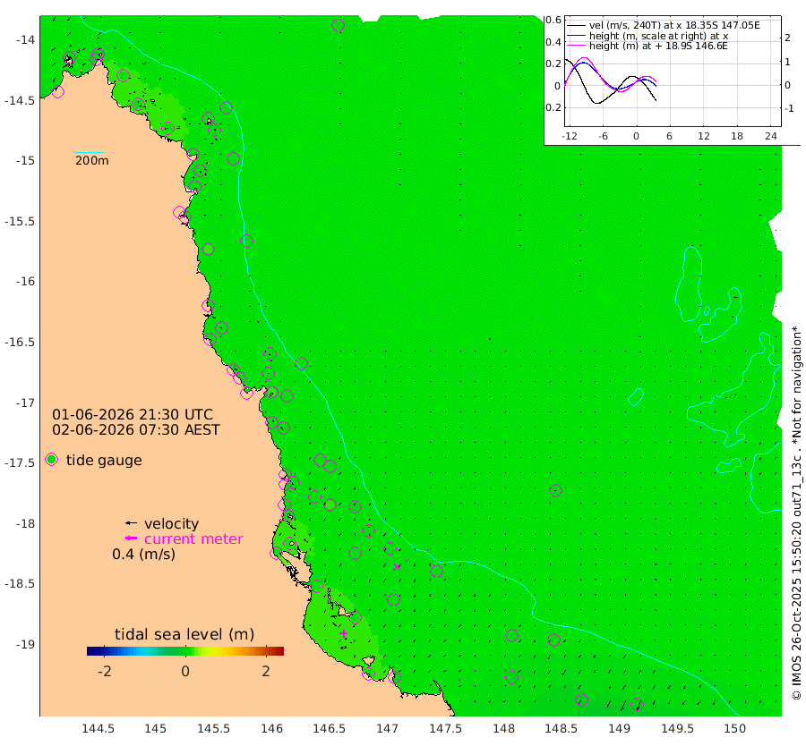 1cm/s 133T +11cm/s rms + 4cm/s -61T. GBRLSL 354m 2cm/s -161T +15cm/s rms + 2cm/s -84T. GBRLSH 32m 4cm/s -151T +15cm/s rms + 5cm/s -155T. GBRPPS 72m 2cm/s -143T +17cm/s rms + 13cm/s 115T. GBRMYR 223m 3cm/s -134T +18cm/s rms + 0cm/s -9T. NRSYON 29m 5cm Osprey Reef - West 9cm Stanley Island 1cm Pipon Islands 6cm Cape Melville 12cm Munro Reef 9cm Leggatt Island 10cm Normanby River 8cm Carter Reef 8cm Lizard Island (QLD) 10cm East Petherbridge Island 7cm North Direction Island 12cm Cape Flattery 8cm Ribbon Reef No.9 12cm Low Wooded Island 7cm Cape Bedford 0cm Endeavour River North 9cm Cooktown 8cm Cruiser Passage 16cm East Hope Island 7cm Bailay Creek 14cm Low Islets 10cm Port Douglas 10cm Palm Cove 8cm Yorkeys Knob 5cm Michaelmas Cay 9cm Euston Reef 10cm Cairns 9cm Green Island 15cm Fitzroy Island 10cm Sudbury Cay 8cm High Island 12cm Russell Island 11cm Peart Reef 10cm Nathan Reef 9cm Mourilyan Harbour 8cm Cowley Beach 5cm North Barnard Island 10cm Eddy Reef 16cm Beaver Reef 7cm Unnamed Reef No. 1 7cm Flinders Reef 9cm Clump Point 8cm Dunk Island 7cm Barnett Patches 8cm Goold Island 9cm Cardwell 10cm Britomart Reef 6cm Pith Reef 7cm Dip Reef 9cm Lucinda (Offshore) 11cm John Brewer Reef 12cm Albino Rock 7cm Shrimp Reef 3cm Jaguar Reef 9cm Townsville 7cm Cape Ferguson -6cm Stanley Reef -11cm Wallaby Reef -6cm Kennedy Reef