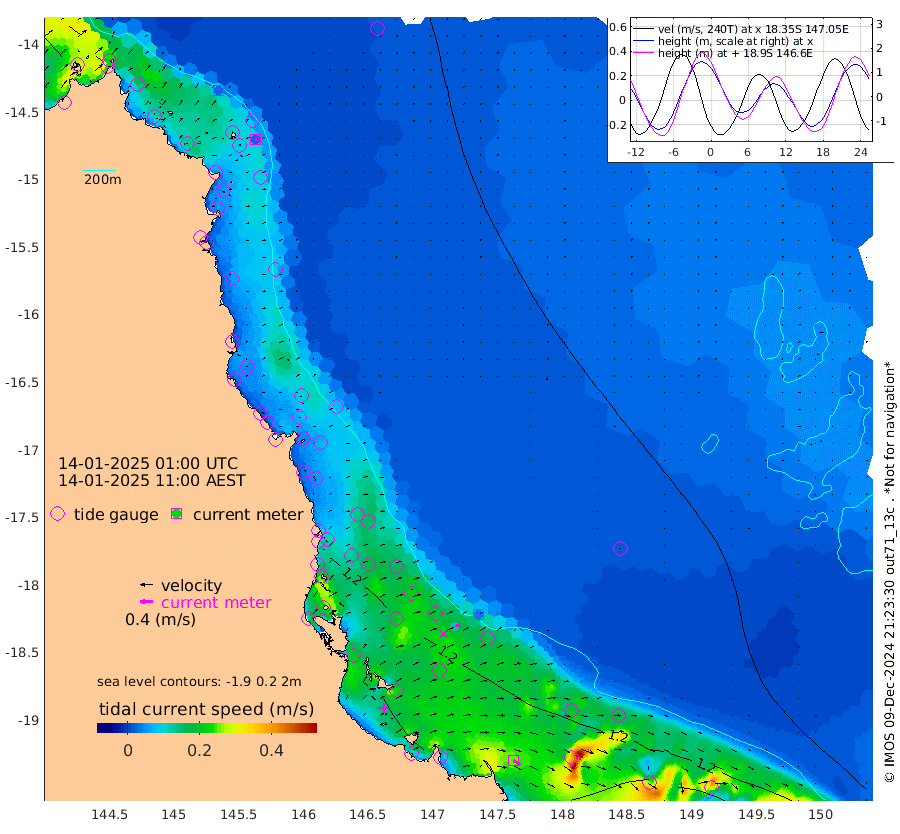2cm/s -74T +11cm/s rms + 4cm/s -61T. GBRLSL 354m 3cm/s 96T +15cm/s rms + 2cm/s -84T. GBRLSH 32m 13cm/s 79T +15cm/s rms + 5cm/s -155T. GBRPPS 72m 4cm/s 79T +17cm/s rms + 13cm/s 115T. GBRMYR 223m 26cm/s 124T +18cm/s rms + 0cm/s -9T. NRSYON 29m 111cm Osprey Reef - West 129cm Stanley Island 95cm Pipon Islands 116cm Cape Melville 124cm Munro Reef 129cm Leggatt Island 144cm Normanby River 119cm Carter Reef 118cm Lizard Island (QLD) 122cm East Petherbridge Island 114cm North Direction Island 121cm Cape Flattery 117cm Ribbon Reef No.9 126cm Low Wooded Island 108cm Cape Bedford 83cm Endeavour River North 119cm Cooktown 114cm Cruiser Passage 112cm East Hope Island 115cm Bailay Creek 112cm Low Islets 122cm Port Douglas 121cm Palm Cove 123cm Yorkeys Knob 118cm Michaelmas Cay 90cm Euston Reef 125cm Cairns 114cm Green Island 110cm Fitzroy Island 118cm Sudbury Cay 118cm High Island 102cm Russell Island 121cm Peart Reef 116cm Nathan Reef 126cm Mourilyan Harbour 124cm Cowley Beach 136cm North Barnard Island 126cm Eddy Reef 164cm Beaver Reef 122cm Unnamed Reef No. 1 103cm Flinders Reef 131cm Clump Point 137cm Dunk Island 124cm Barnett Patches 141cm Goold Island 155cm Cardwell 125cm Britomart Reef 118cm Pith Reef 122cm Dip Reef 144cm Lucinda (Offshore) 133cm John Brewer Reef 140cm Albino Rock 123cm Shrimp Reef 110cm Jaguar Reef 149cm Townsville 142cm Cape Ferguson 148cm Stanley Reef 143cm Wallaby Reef 131cm Kennedy Reef