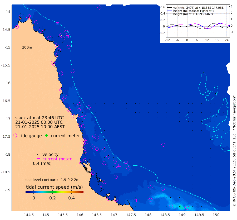 2cm/s -87T +11cm/s rms + 4cm/s -61T. GBRLSL 354m 1cm/s -82T +15cm/s rms + 2cm/s -84T. GBRLSH 32m 1cm/s 151T +15cm/s rms + 5cm/s -155T. GBRPPS 72m 0cm/s 32T +17cm/s rms + 13cm/s 115T. GBRMYR 223m 1cm/s -79T +18cm/s rms + 0cm/s -9T. NRSYON 29m 15cm Osprey Reef - West 19cm Stanley Island -7cm Pipon Islands 16cm Cape Melville 16cm Munro Reef 18cm Leggatt Island 19cm Normanby River 19cm Carter Reef 16cm Lizard Island (QLD) 15cm East Petherbridge Island 13cm North Direction Island 22cm Cape Flattery 19cm Ribbon Reef No.9 18cm Low Wooded Island 13cm Cape Bedford 11cm Endeavour River North 17cm Cooktown 18cm Cruiser Passage 20cm East Hope Island 6cm Bailay Creek 17cm Low Islets 16cm Port Douglas 16cm Palm Cove 17cm Yorkeys Knob 19cm Michaelmas Cay 13cm Euston Reef 16cm Cairns 19cm Green Island 25cm Fitzroy Island 21cm Sudbury Cay 17cm High Island 21cm Russell Island 21cm Peart Reef 18cm Nathan Reef 16cm Mourilyan Harbour 14cm Cowley Beach 20cm North Barnard Island 15cm Eddy Reef 22cm Beaver Reef 17cm Unnamed Reef No. 1 23cm Flinders Reef 16cm Clump Point 18cm Dunk Island 15cm Barnett Patches 16cm Goold Island 15cm Cardwell 15cm Britomart Reef 16cm Pith Reef 23cm Dip Reef 15cm Lucinda (Offshore) 25cm John Brewer Reef 14cm Albino Rock 16cm Shrimp Reef 10cm Jaguar Reef 14cm Townsville 13cm Cape Ferguson 9cm Stanley Reef 7cm Wallaby Reef 3cm Kennedy Reef