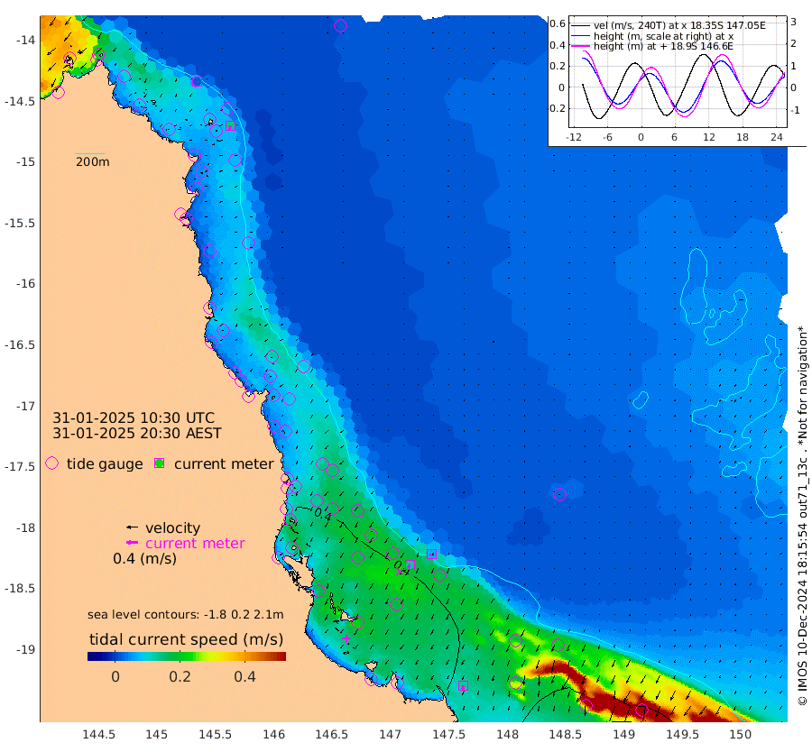 2cm/s 131T +11cm/s rms + 4cm/s -61T. GBRLSL 354m 14cm/s -170T +15cm/s rms + 2cm/s -84T. GBRLSH 32m 13cm/s -149T +15cm/s rms + 5cm/s -155T. GBRPPS 72m 6cm/s -148T +17cm/s rms + 13cm/s 115T. GBRMYR 223m 13cm/s -174T +18cm/s rms + 0cm/s -9T. NRSYON 29m 26cm Osprey Reef - West 28cm Stanley Island 32cm Pipon Islands 23cm Cape Melville 29cm Munro Reef 30cm Leggatt Island 32cm Normanby River 29cm Carter Reef 24cm Lizard Island (QLD) 25cm East Petherbridge Island 22cm North Direction Island 29cm Cape Flattery 28cm Ribbon Reef No.9 32cm Low Wooded Island 22cm Cape Bedford 4cm Endeavour River North 28cm Cooktown 28cm Cruiser Passage 33cm East Hope Island 20cm Bailay Creek 28cm Low Islets 31cm Port Douglas 35cm Palm Cove 33cm Yorkeys Knob 27cm Michaelmas Cay 33cm Euston Reef 33cm Cairns 36cm Green Island 40cm Fitzroy Island 33cm Sudbury Cay 34cm High Island 38cm Russell Island 34cm Peart Reef 34cm Nathan Reef 30cm Mourilyan Harbour 31cm Cowley Beach 17cm North Barnard Island 31cm Eddy Reef 40cm Beaver Reef 32cm Unnamed Reef No. 1 28cm Flinders Reef 34cm Clump Point 34cm Dunk Island 25cm Barnett Patches 36cm Goold Island 35cm Cardwell 41cm Britomart Reef 28cm Pith Reef 30cm Dip Reef 37cm Lucinda (Offshore) 30cm John Brewer Reef 40cm Albino Rock 23cm Shrimp Reef 26cm Jaguar Reef 40cm Townsville 36cm Cape Ferguson 10cm Stanley Reef -1cm Wallaby Reef 10cm Kennedy Reef