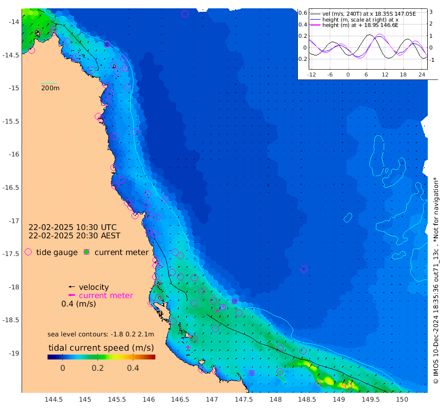 1cm/s 144T +11cm/s rms + 4cm/s -61T. GBRLSL 354m 8cm/s 15T +15cm/s rms + 2cm/s -84T. GBRLSH 32m 8cm/s 39T +15cm/s rms + 5cm/s -155T. GBRPPS 72m 4cm/s 57T +17cm/s rms + 13cm/s 115T. GBRMYR 223m 5cm/s 40T +18cm/s rms + 0cm/s -9T. NRSYON 29m -16cm Osprey Reef - West -7cm Stanley Island 1cm Pipon Islands -11cm Cape Melville -14cm Munro Reef -12cm Leggatt Island 2cm Normanby River -23cm Carter Reef -19cm Lizard Island (QLD) -6cm East Petherbridge Island -10cm North Direction Island -17cm Cape Flattery -19cm Ribbon Reef No.9 -25cm Low Wooded Island -11cm Cape Bedford -6cm Endeavour River North -18cm Cooktown -21cm Cruiser Passage -30cm East Hope Island -13cm Bailay Creek -17cm Low Islets -17cm Port Douglas -21cm Palm Cove -19cm Yorkeys Knob -15cm Michaelmas Cay -18cm Euston Reef -17cm Cairns -21cm Green Island -26cm Fitzroy Island -19cm Sudbury Cay -22cm High Island -16cm Russell Island -17cm Peart Reef -19cm Nathan Reef -18cm Mourilyan Harbour -15cm Cowley Beach -14cm North Barnard Island -18cm Eddy Reef -24cm Beaver Reef -20cm Unnamed Reef No. 1 -27cm Flinders Reef -17cm Clump Point -20cm Dunk Island -19cm Barnett Patches -17cm Goold Island -8cm Cardwell -24cm Britomart Reef -19cm Pith Reef -26cm Dip Reef -13cm Lucinda (Offshore) -20cm John Brewer Reef -13cm Albino Rock -27cm Shrimp Reef -25cm Jaguar Reef -12cm Townsville -15cm Cape Ferguson -14cm Stanley Reef -9cm Wallaby Reef -15cm Kennedy Reef