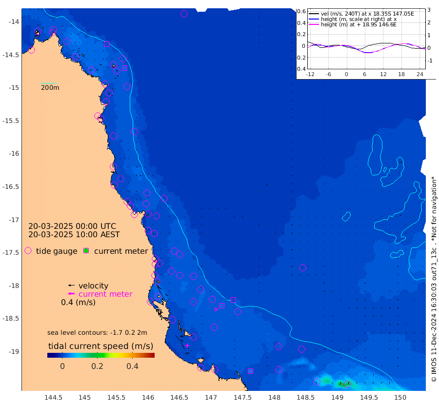 1cm/s -121T +11cm/s rms + 4cm/s -61T. GBRLSL 354m 3cm/s 6T +15cm/s rms + 2cm/s -84T. GBRLSH 32m 3cm/s 64T +15cm/s rms + 5cm/s -155T. GBRPPS 72m 1cm/s 42T +17cm/s rms + 13cm/s 115T. GBRMYR 223m 4cm/s 121T +18cm/s rms + 0cm/s -9T. NRSYON 29m 20cm Osprey Reef - West 23cm Stanley Island 7cm Pipon Islands 18cm Cape Melville 24cm Munro Reef 26cm Leggatt Island 30cm Normanby River 21cm Carter Reef 19cm Lizard Island (QLD) 20cm East Petherbridge Island 16cm North Direction Island 26cm Cape Flattery 23cm Ribbon Reef No.9 25cm Low Wooded Island 16cm Cape Bedford 16cm Endeavour River North 22cm Cooktown 21cm Cruiser Passage 21cm East Hope Island 15cm Bailay Creek 23cm Low Islets 22cm Port Douglas 22cm Palm Cove 22cm Yorkeys Knob 21cm Michaelmas Cay 9cm Euston Reef 23cm Cairns 19cm Green Island 26cm Fitzroy Island 23cm Sudbury Cay 19cm High Island 19cm Russell Island 24cm Peart Reef 22cm Nathan Reef 22cm Mourilyan Harbour 18cm Cowley Beach 25cm North Barnard Island 25cm Eddy Reef 33cm Beaver Reef 20cm Unnamed Reef No. 1 21cm Flinders Reef 22cm Clump Point 24cm Dunk Island 18cm Barnett Patches 22cm Goold Island 27cm Cardwell 19cm Britomart Reef 17cm Pith Reef 25cm Dip Reef 24cm Lucinda (Offshore) 27cm John Brewer Reef 22cm Albino Rock 16cm Shrimp Reef 11cm Jaguar Reef 23cm Townsville 20cm Cape Ferguson 13cm Stanley Reef 9cm Wallaby Reef 8cm Kennedy Reef