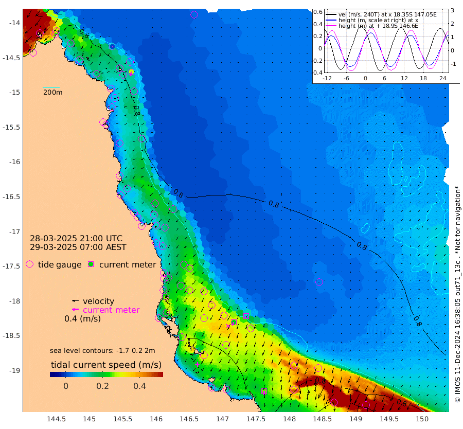 1cm/s -103T +11cm/s rms + 4cm/s -61T. GBRLSL 354m 28cm/s -165T +15cm/s rms + 2cm/s -84T. GBRLSH 32m 22cm/s -154T +15cm/s rms + 5cm/s -155T. GBRPPS 72m 10cm/s -152T +17cm/s rms + 13cm/s 115T. GBRMYR 223m 25cm/s 175T +18cm/s rms + 0cm/s -9T. NRSYON 29m 71cm Osprey Reef - West 75cm Stanley Island 58cm Pipon Islands 67cm Cape Melville 70cm Munro Reef 74cm Leggatt Island 87cm Normanby River 69cm Carter Reef 74cm Lizard Island (QLD) 74cm East Petherbridge Island 70cm North Direction Island 80cm Cape Flattery 76cm Ribbon Reef No.9 88cm Low Wooded Island 68cm Cape Bedford 46cm Endeavour River North 78cm Cooktown 78cm Cruiser Passage 83cm East Hope Island 60cm Bailay Creek 76cm Low Islets 81cm Port Douglas 87cm Palm Cove 86cm Yorkeys Knob 74cm Michaelmas Cay 75cm Euston Reef 83cm Cairns 87cm Green Island 86cm Fitzroy Island 83cm Sudbury Cay 85cm High Island 89cm Russell Island 89cm Peart Reef 83cm Nathan Reef 80cm Mourilyan Harbour 85cm Cowley Beach 69cm North Barnard Island 80cm Eddy Reef 107cm Beaver Reef 84cm Unnamed Reef No. 1 81cm Flinders Reef 88cm Clump Point 90cm Dunk Island 83cm Barnett Patches 95cm Goold Island 89cm Cardwell 98cm Britomart Reef 81cm Pith Reef 87cm Dip Reef 93cm Lucinda (Offshore) 86cm John Brewer Reef 97cm Albino Rock 78cm Shrimp Reef 75cm Jaguar Reef 101cm Townsville 96cm Cape Ferguson 64cm Stanley Reef 46cm Wallaby Reef 58cm Kennedy Reef