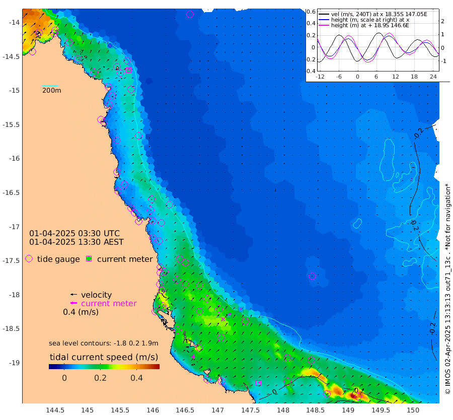 1cm/s -52T +11cm/s rms + 4cm/s -61T. GBRLSL 354m 14cm/s 16T +15cm/s rms + 2cm/s -84T. GBRLSH 32m 15cm/s 39T +15cm/s rms + 5cm/s -155T. GBRPPS 72m 5cm/s 43T +17cm/s rms + 13cm/s 115T. GBRMYR 223m 10cm/s 66T +18cm/s rms + 0cm/s -9T. NRSYON 29m -22cm Osprey Reef - West -15cm Stanley Island 8cm Pipon Islands -14cm Cape Melville -15cm Munro Reef -14cm Leggatt Island -7cm Normanby River -19cm Carter Reef -16cm Lizard Island (QLD) -19cm East Petherbridge Island -20cm North Direction Island -20cm Cape Flattery -23cm Ribbon Reef No.9 -23cm Low Wooded Island -21cm Cape Bedford -8cm Endeavour River North -19cm Cooktown -25cm Cruiser Passage -25cm East Hope Island -7cm Bailay Creek -18cm Low Islets -19cm Port Douglas -23cm Palm Cove -20cm Yorkeys Knob -22cm Michaelmas Cay -39cm Euston Reef -19cm Cairns -29cm Green Island -20cm Fitzroy Island -24cm Sudbury Cay -21cm High Island -33cm Russell Island -23cm Peart Reef -21cm Nathan Reef -18cm Mourilyan Harbour -20cm Cowley Beach 3cm North Barnard Island -21cm Eddy Reef -21cm Beaver Reef -24cm Unnamed Reef No. 1 -32cm Flinders Reef -19cm Clump Point -15cm Dunk Island -18cm Barnett Patches -18cm Goold Island -8cm Cardwell -26cm Britomart Reef -24cm Pith Reef -29cm Dip Reef -16cm Lucinda (Offshore) -12cm John Brewer Reef -20cm Albino Rock -17cm Shrimp Reef -23cm Jaguar Reef -17cm Townsville -18cm Cape Ferguson 2cm Stanley Reef 7cm Wallaby Reef -4cm Kennedy Reef