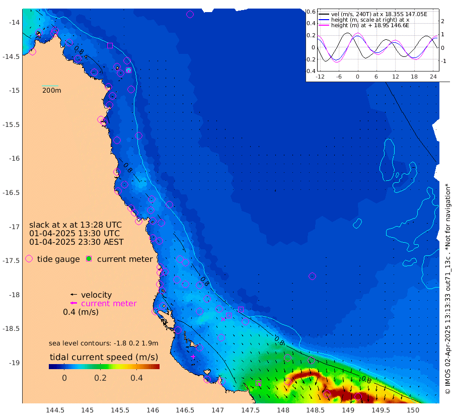 0cm/s -98T +11cm/s rms + 4cm/s -61T. GBRLSL 354m 10cm/s 177T +15cm/s rms + 2cm/s -84T. GBRLSH 32m 5cm/s 146T +15cm/s rms + 5cm/s -155T. GBRPPS 72m 3cm/s -159T +17cm/s rms + 13cm/s 115T. GBRMYR 223m 25cm/s 144T +18cm/s rms + 0cm/s -9T. NRSYON 29m 68cm Osprey Reef - West 68cm Stanley Island 68cm Pipon Islands 66cm Cape Melville 74cm Munro Reef 75cm Leggatt Island 79cm Normanby River 70cm Carter Reef 69cm Lizard Island (QLD) 61cm East Petherbridge Island 59cm North Direction Island 72cm Cape Flattery 71cm Ribbon Reef No.9 70cm Low Wooded Island 55cm Cape Bedford 45cm Endeavour River North 70cm Cooktown 70cm Cruiser Passage 68cm East Hope Island 58cm Bailay Creek 65cm Low Islets 74cm Port Douglas 76cm Palm Cove 76cm Yorkeys Knob 68cm Michaelmas Cay 54cm Euston Reef 77cm Cairns 70cm Green Island 79cm Fitzroy Island 74cm Sudbury Cay 72cm High Island 57cm Russell Island 71cm Peart Reef 72cm Nathan Reef 77cm Mourilyan Harbour 74cm Cowley Beach 77cm North Barnard Island 82cm Eddy Reef 99cm Beaver Reef 77cm Unnamed Reef No. 1 68cm Flinders Reef 81cm Clump Point 84cm Dunk Island 71cm Barnett Patches 87cm Goold Island 94cm Cardwell 80cm Britomart Reef 73cm Pith Reef 78cm Dip Reef 89cm Lucinda (Offshore) 76cm John Brewer Reef 91cm Albino Rock 74cm Shrimp Reef 75cm Jaguar Reef 94cm Townsville 89cm Cape Ferguson 80cm Stanley Reef 82cm Wallaby Reef 88cm Kennedy Reef