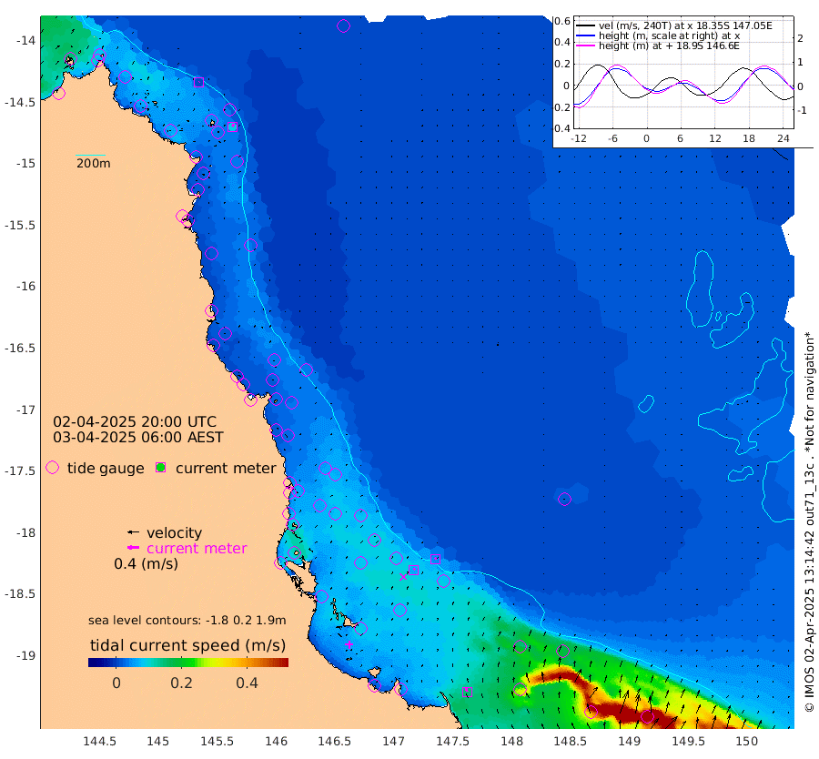 0cm/s 57T +11cm/s rms + 4cm/s -61T. GBRLSL 354m 10cm/s 18T +15cm/s rms + 2cm/s -84T. GBRLSH 32m 6cm/s 45T +15cm/s rms + 5cm/s -155T. GBRPPS 72m 5cm/s 42T +17cm/s rms + 13cm/s 115T. GBRMYR 223m 15cm/s -16T +18cm/s rms + 0cm/s -9T. NRSYON 29m 3cm Osprey Reef - West 15cm Stanley Island -14cm Pipon Islands 13cm Cape Melville 11cm Munro Reef 8cm Leggatt Island 3cm Normanby River 17cm Carter Reef 11cm Lizard Island (QLD) 17cm East Petherbridge Island 16cm North Direction Island 11cm Cape Flattery 6cm Ribbon Reef No.9 8cm Low Wooded Island 17cm Cape Bedford -4cm Endeavour River North 9cm Cooktown 5cm Cruiser Passage 14cm East Hope Island 12cm Bailay Creek 10cm Low Islets 7cm Port Douglas 5cm Palm Cove 4cm Yorkeys Knob 12cm Michaelmas Cay 15cm Euston Reef 6cm Cairns 8cm Green Island 2cm Fitzroy Island 8cm Sudbury Cay 7cm High Island 13cm Russell Island 9cm Peart Reef 5cm Nathan Reef 6cm Mourilyan Harbour 7cm Cowley Beach 8cm North Barnard Island 0cm Eddy Reef 8cm Beaver Reef 4cm Unnamed Reef No. 1 7cm Flinders Reef 4cm Clump Point 5cm Dunk Island 8cm Barnett Patches 3cm Goold Island 4cm Cardwell 5cm Britomart Reef 7cm Pith Reef 2cm Dip Reef 3cm Lucinda (Offshore) 14cm John Brewer Reef -2cm Albino Rock 11cm Shrimp Reef 2cm Jaguar Reef 1cm Townsville 2cm Cape Ferguson 11cm Stanley Reef 9cm Wallaby Reef -1cm Kennedy Reef