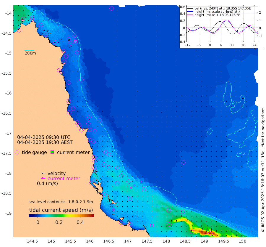 1cm/s 133T +11cm/s rms + 4cm/s -61T. GBRLSL 354m 8cm/s 7T +15cm/s rms + 2cm/s -84T. GBRLSH 32m 6cm/s 19T +15cm/s rms + 5cm/s -155T. GBRPPS 72m 4cm/s 40T +17cm/s rms + 13cm/s 115T. GBRMYR 223m 9cm/s -13T +18cm/s rms + 0cm/s -9T. NRSYON 29m -43cm Osprey Reef - West -31cm Stanley Island -36cm Pipon Islands -38cm Cape Melville -38cm Munro Reef -40cm Leggatt Island -30cm Normanby River -41cm Carter Reef -42cm Lizard Island (QLD) -30cm East Petherbridge Island -34cm North Direction Island -38cm Cape Flattery -40cm Ribbon Reef No.9 -47cm Low Wooded Island -31cm Cape Bedford -23cm Endeavour River North -41cm Cooktown -42cm Cruiser Passage -43cm East Hope Island -31cm Bailay Creek -39cm Low Islets -43cm Port Douglas -46cm Palm Cove -46cm Yorkeys Knob -36cm Michaelmas Cay -31cm Euston Reef -44cm Cairns -40cm Green Island -44cm Fitzroy Island -42cm Sudbury Cay -46cm High Island -32cm Russell Island -40cm Peart Reef -44cm Nathan Reef -44cm Mourilyan Harbour -40cm Cowley Beach -35cm North Barnard Island -48cm Eddy Reef -54cm Beaver Reef -47cm Unnamed Reef No. 1 -44cm Flinders Reef -45cm Clump Point -45cm Dunk Island -42cm Barnett Patches -48cm Goold Island -44cm Cardwell -50cm Britomart Reef -43cm Pith Reef -51cm Dip Reef -46cm Lucinda (Offshore) -39cm John Brewer Reef -46cm Albino Rock -45cm Shrimp Reef -44cm Jaguar Reef -47cm Townsville -47cm Cape Ferguson -44cm Stanley Reef -39cm Wallaby Reef -55cm Kennedy Reef