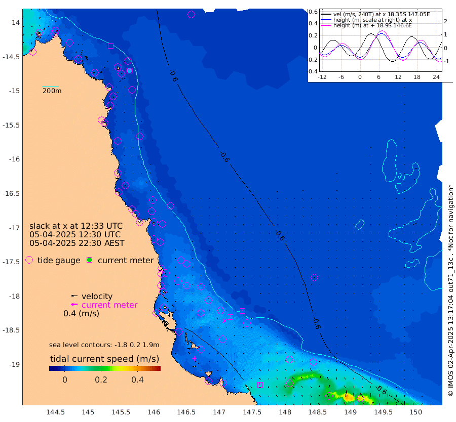 0cm/s -124T +11cm/s rms + 4cm/s -61T. GBRLSL 354m 7cm/s 0T +15cm/s rms + 2cm/s -84T. GBRLSH 32m 6cm/s -19T +15cm/s rms + 5cm/s -155T. GBRPPS 72m 3cm/s -6T +17cm/s rms + 13cm/s 115T. GBRMYR 223m 10cm/s -32T +18cm/s rms + 0cm/s -9T. NRSYON 29m -55cm Osprey Reef - West -66cm Stanley Island -66cm Pipon Islands -63cm Cape Melville -63cm Munro Reef -66cm Leggatt Island -69cm Normanby River -65cm Carter Reef -65cm Lizard Island (QLD) -62cm East Petherbridge Island -62cm North Direction Island -62cm Cape Flattery -57cm Ribbon Reef No.9 -64cm Low Wooded Island -58cm Cape Bedford -28cm Endeavour River North -65cm Cooktown -57cm Cruiser Passage -66cm East Hope Island -58cm Bailay Creek -63cm Low Islets -67cm Port Douglas -69cm Palm Cove -70cm Yorkeys Knob -58cm Michaelmas Cay -49cm Euston Reef -69cm Cairns -63cm Green Island -64cm Fitzroy Island -62cm Sudbury Cay -71cm High Island -60cm Russell Island -69cm Peart Reef -68cm Nathan Reef -68cm Mourilyan Harbour -68cm Cowley Beach -67cm North Barnard Island -61cm Eddy Reef -85cm Beaver Reef -66cm Unnamed Reef No. 1 -54cm Flinders Reef -72cm Clump Point -75cm Dunk Island -66cm Barnett Patches -79cm Goold Island -81cm Cardwell -78cm Britomart Reef -61cm Pith Reef -60cm Dip Reef -79cm Lucinda (Offshore) -76cm John Brewer Reef -74cm Albino Rock -67cm Shrimp Reef -59cm Jaguar Reef -84cm Townsville -80cm Cape Ferguson -75cm Stanley Reef -63cm Wallaby Reef -69cm Kennedy Reef