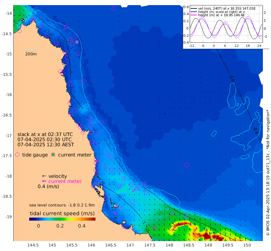1cm/s 91T +11cm/s rms + 4cm/s -61T. GBRLSL 354m 13cm/s 10T +15cm/s rms + 2cm/s -84T. GBRLSH 32m 8cm/s -12T +15cm/s rms + 5cm/s -155T. GBRPPS 72m 4cm/s -4T +17cm/s rms + 13cm/s 115T. GBRMYR 223m 20cm/s -31T +18cm/s rms + 0cm/s -9T. NRSYON 29m -67cm Osprey Reef - West -85cm Stanley Island -71cm Pipon Islands -74cm Cape Melville -76cm Munro Reef -79cm Leggatt Island -99cm Normanby River -73cm Carter Reef -75cm Lizard Island (QLD) -81cm East Petherbridge Island -76cm North Direction Island -79cm Cape Flattery -74cm Ribbon Reef No.9 -83cm Low Wooded Island -73cm Cape Bedford -46cm Endeavour River North -78cm Cooktown -73cm Cruiser Passage -73cm East Hope Island -73cm Bailay Creek -71cm Low Islets -80cm Port Douglas -81cm Palm Cove -82cm Yorkeys Knob -76cm Michaelmas Cay -67cm Euston Reef -83cm Cairns -80cm Green Island -73cm Fitzroy Island -78cm Sudbury Cay -80cm High Island -79cm Russell Island -85cm Peart Reef -76cm Nathan Reef -81cm Mourilyan Harbour -88cm Cowley Beach -84cm North Barnard Island -76cm Eddy Reef -106cm Beaver Reef -80cm Unnamed Reef No. 1 -69cm Flinders Reef -89cm Clump Point -95cm Dunk Island -82cm Barnett Patches -98cm Goold Island -104cm Cardwell -92cm Britomart Reef -76cm Pith Reef -76cm Dip Reef -100cm Lucinda (Offshore) -90cm John Brewer Reef -99cm Albino Rock -80cm Shrimp Reef -74cm Jaguar Reef -108cm Townsville -102cm Cape Ferguson -91cm Stanley Reef -83cm Wallaby Reef -77cm Kennedy Reef