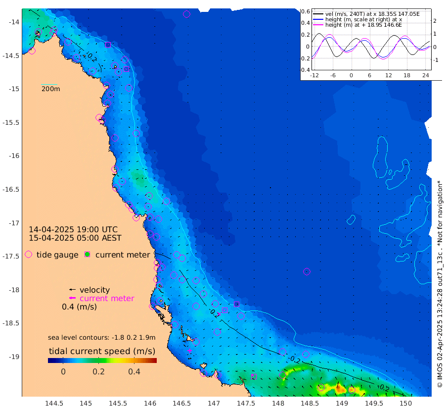 0cm/s -49T +11cm/s rms + 4cm/s -61T. GBRLSL 354m 2cm/s -124T +15cm/s rms + 2cm/s -84T. GBRLSH 32m 6cm/s -130T +15cm/s rms + 5cm/s -155T. GBRPPS 72m 1cm/s -145T +17cm/s rms + 13cm/s 115T. GBRMYR 223m 14cm/s -48T +18cm/s rms + 0cm/s -9T. NRSYON 29m -7cm Osprey Reef - West -10cm Stanley Island -23cm Pipon Islands -9cm Cape Melville -12cm Munro Reef -12cm Leggatt Island -18cm Normanby River -6cm Carter Reef -5cm Lizard Island (QLD) -12cm East Petherbridge Island -8cm North Direction Island -10cm Cape Flattery -7cm Ribbon Reef No.9 -3cm Low Wooded Island -7cm Cape Bedford -5cm Endeavour River North -7cm Cooktown -4cm Cruiser Passage -3cm East Hope Island -12cm Bailay Creek -4cm Low Islets -9cm Port Douglas -6cm Palm Cove -1cm Yorkeys Knob -6cm Michaelmas Cay -9cm Euston Reef -10cm Cairns -1cm Green Island -5cm Fitzroy Island -6cm Sudbury Cay 2cm High Island 7cm Russell Island 2cm Peart Reef 0cm Nathan Reef -11cm Mourilyan Harbour -11cm Cowley Beach -11cm North Barnard Island -21cm Eddy Reef -13cm Beaver Reef -8cm Unnamed Reef No. 1 0cm Flinders Reef -12cm Clump Point -9cm Dunk Island -5cm Barnett Patches -11cm Goold Island -24cm Cardwell -3cm Britomart Reef -10cm Pith Reef -4cm Dip Reef -17cm Lucinda (Offshore) -2cm John Brewer Reef -22cm Albino Rock -10cm Shrimp Reef -14cm Jaguar Reef -19cm Townsville -16cm Cape Ferguson -16cm Stanley Reef -27cm Wallaby Reef -28cm Kennedy Reef