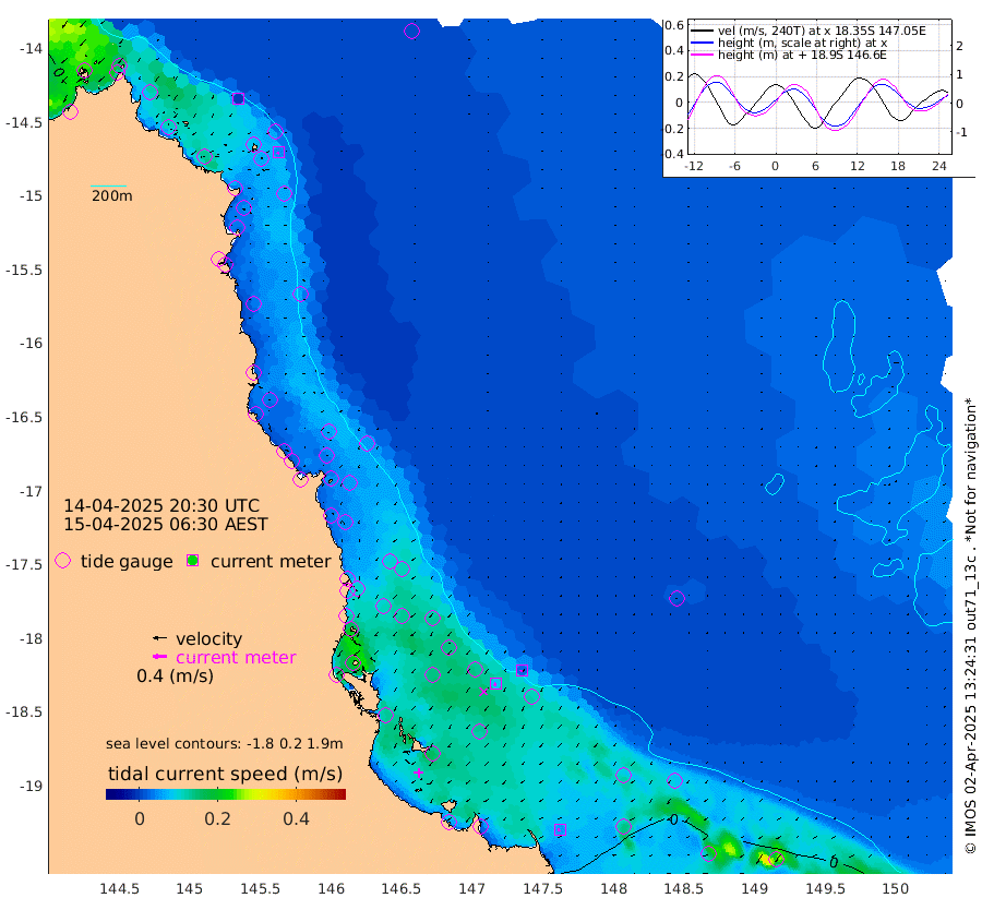 0cm/s -144T +11cm/s rms + 4cm/s -61T. GBRLSL 354m 5cm/s -150T +15cm/s rms + 2cm/s -84T. GBRLSH 32m 9cm/s -147T +15cm/s rms + 5cm/s -155T. GBRPPS 72m 3cm/s -153T +17cm/s rms + 13cm/s 115T. GBRMYR 223m 6cm/s -107T +18cm/s rms + 0cm/s -9T. NRSYON 29m 14cm Osprey Reef - West 19cm Stanley Island -2cm Pipon Islands 16cm Cape Melville 17cm Munro Reef 16cm Leggatt Island 17cm Normanby River 19cm Carter Reef 19cm Lizard Island (QLD) 18cm East Petherbridge Island 17cm North Direction Island 22cm Cape Flattery 19cm Ribbon Reef No.9 23cm Low Wooded Island 17cm Cape Bedford 6cm Endeavour River North 20cm Cooktown 20cm Cruiser Passage 27cm East Hope Island 10cm Bailay Creek 22cm Low Islets 19cm Port Douglas 21cm Palm Cove 22cm Yorkeys Knob 19cm Michaelmas Cay 20cm Euston Reef 19cm Cairns 24cm Green Island 28cm Fitzroy Island 22cm Sudbury Cay 24cm High Island 32cm Russell Island 28cm Peart Reef 24cm Nathan Reef 17cm Mourilyan Harbour 18cm Cowley Beach 15cm North Barnard Island 12cm Eddy Reef 26cm Beaver Reef 18cm Unnamed Reef No. 1 24cm Flinders Reef 18cm Clump Point 20cm Dunk Island 19cm Barnett Patches 20cm Goold Island 14cm Cardwell 25cm Britomart Reef 18cm Pith Reef 21cm Dip Reef 17cm Lucinda (Offshore) 27cm John Brewer Reef 16cm Albino Rock 17cm Shrimp Reef 11cm Jaguar Reef 18cm Townsville 17cm Cape Ferguson 3cm Stanley Reef -8cm Wallaby Reef -6cm Kennedy Reef