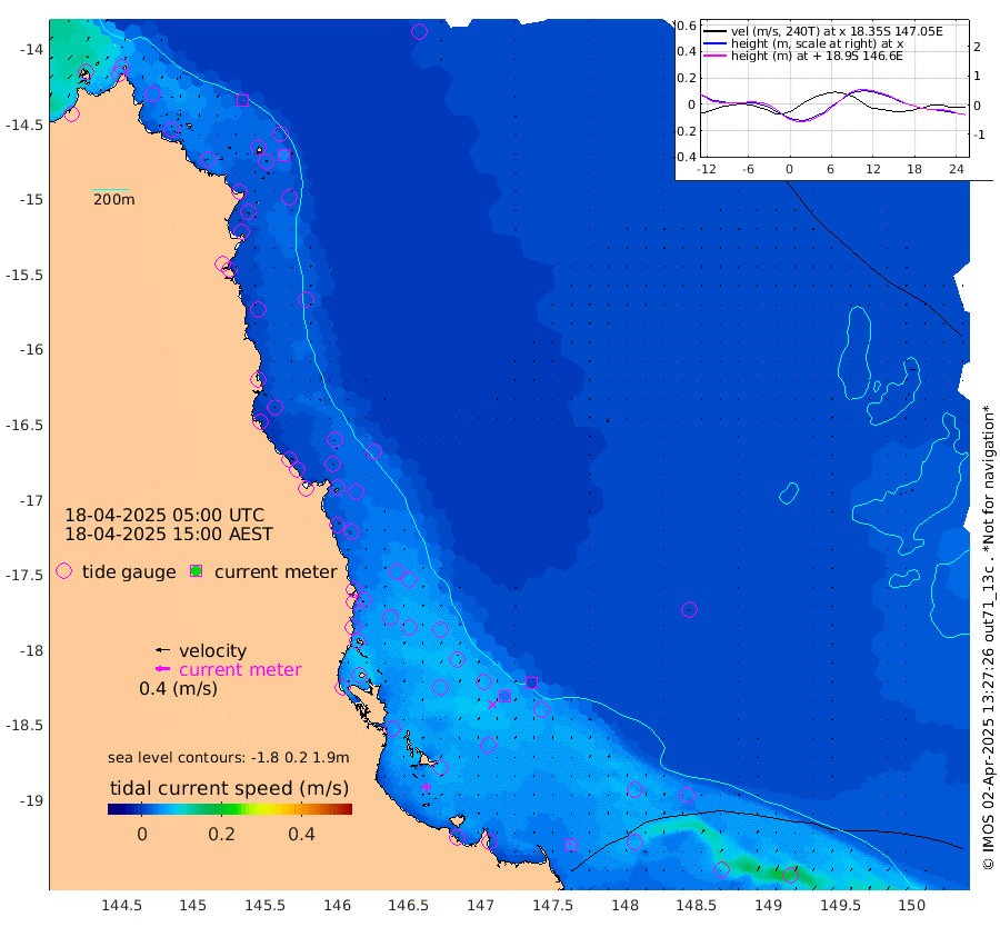 0cm/s 60T +11cm/s rms + 4cm/s -61T. GBRLSL 354m 4cm/s -3T +15cm/s rms + 2cm/s -84T. GBRLSH 32m 4cm/s -1T +15cm/s rms + 5cm/s -155T. GBRPPS 72m 1cm/s 55T +17cm/s rms + 13cm/s 115T. GBRMYR 223m 5cm/s -25T +18cm/s rms + 0cm/s -9T. NRSYON 29m -46cm Osprey Reef - West -49cm Stanley Island -19cm Pipon Islands -42cm Cape Melville -52cm Munro Reef -50cm Leggatt Island -51cm Normanby River -55cm Carter Reef -46cm Lizard Island (QLD) -47cm East Petherbridge Island -43cm North Direction Island -52cm Cape Flattery -55cm Ribbon Reef No.9 -61cm Low Wooded Island -42cm Cape Bedford -27cm Endeavour River North -49cm Cooktown -54cm Cruiser Passage -52cm East Hope Island -44cm Bailay Creek -46cm Low Islets -49cm Port Douglas -52cm Palm Cove -52cm Yorkeys Knob -49cm Michaelmas Cay -43cm Euston Reef -50cm Cairns -53cm Green Island -50cm Fitzroy Island -52cm Sudbury Cay -47cm High Island -48cm Russell Island -52cm Peart Reef -49cm Nathan Reef -50cm Mourilyan Harbour -47cm Cowley Beach -44cm North Barnard Island -52cm Eddy Reef -68cm Beaver Reef -51cm Unnamed Reef No. 1 -53cm Flinders Reef -51cm Clump Point -55cm Dunk Island -49cm Barnett Patches -53cm Goold Island -52cm Cardwell -54cm Britomart Reef -47cm Pith Reef -58cm Dip Reef -52cm Lucinda (Offshore) -53cm John Brewer Reef -53cm Albino Rock -48cm Shrimp Reef -44cm Jaguar Reef -53cm Townsville -51cm Cape Ferguson -44cm Stanley Reef -37cm Wallaby Reef -29cm Kennedy Reef