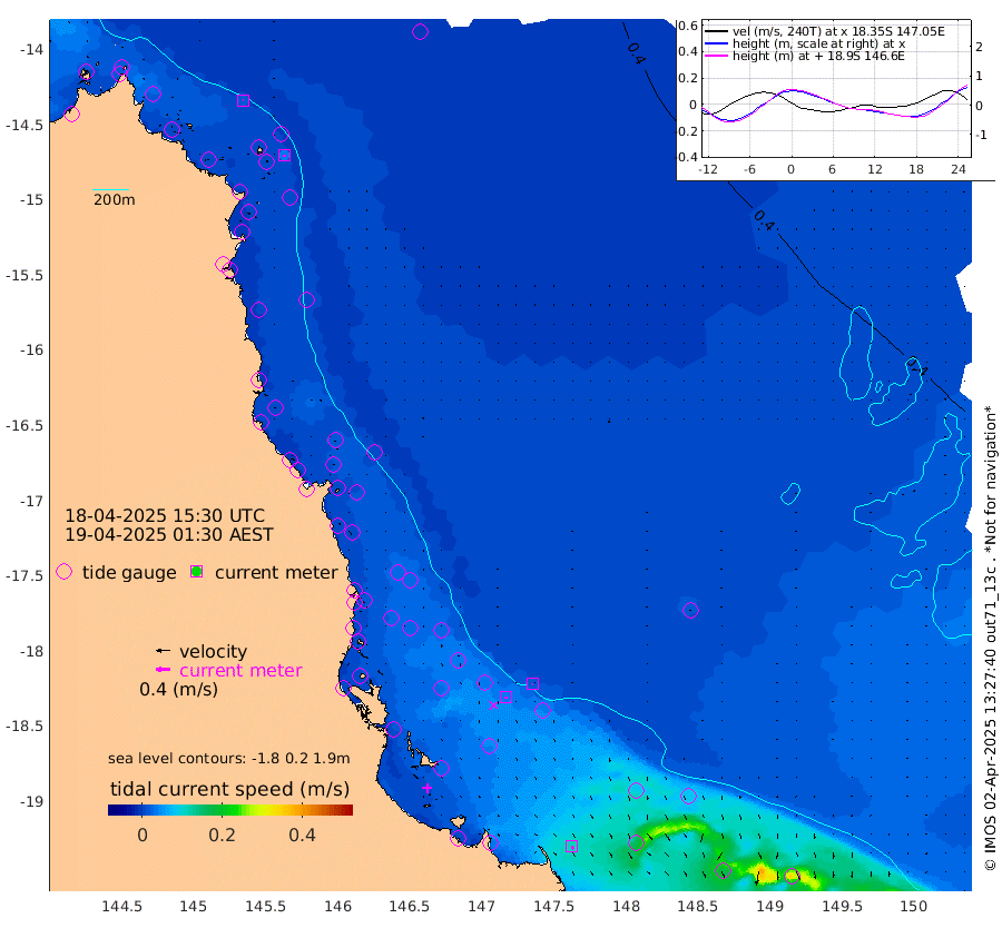 2cm/s -58T +11cm/s rms + 4cm/s -61T. GBRLSL 354m 4cm/s 175T +15cm/s rms + 2cm/s -84T. GBRLSH 32m 4cm/s -180T +15cm/s rms + 5cm/s -155T. GBRPPS 72m 2cm/s -136T +17cm/s rms + 13cm/s 115T. GBRMYR 223m 11cm/s 149T +18cm/s rms + 0cm/s -9T. NRSYON 29m 35cm Osprey Reef - West 36cm Stanley Island 29cm Pipon Islands 41cm Cape Melville 41cm Munro Reef 37cm Leggatt Island 32cm Normanby River 45cm Carter Reef 42cm Lizard Island (QLD) 35cm East Petherbridge Island 37cm North Direction Island 43cm Cape Flattery 39cm Ribbon Reef No.9 43cm Low Wooded Island 35cm Cape Bedford 18cm Endeavour River North 40cm Cooktown 39cm Cruiser Passage 50cm East Hope Island 39cm Bailay Creek 37cm Low Islets 41cm Port Douglas 41cm Palm Cove 37cm Yorkeys Knob 40cm Michaelmas Cay 45cm Euston Reef 42cm Cairns 39cm Green Island 49cm Fitzroy Island 43cm Sudbury Cay 42cm High Island 32cm Russell Island 35cm Peart Reef 36cm Nathan Reef 43cm Mourilyan Harbour 42cm Cowley Beach 45cm North Barnard Island 46cm Eddy Reef 54cm Beaver Reef 42cm Unnamed Reef No. 1 42cm Flinders Reef 44cm Clump Point 44cm Dunk Island 43cm Barnett Patches 45cm Goold Island 47cm Cardwell 45cm Britomart Reef 48cm Pith Reef 44cm Dip Reef 46cm Lucinda (Offshore) 43cm John Brewer Reef 48cm Albino Rock 55cm Shrimp Reef 51cm Jaguar Reef 48cm Townsville 48cm Cape Ferguson 50cm Stanley Reef 55cm Wallaby Reef 56cm Kennedy Reef