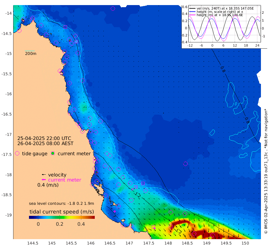 1cm/s -91T +11cm/s rms + 4cm/s -61T. GBRLSL 354m 7cm/s 172T +15cm/s rms + 2cm/s -84T. GBRLSH 32m 9cm/s 110T +15cm/s rms + 5cm/s -155T. GBRPPS 72m 3cm/s 143T +17cm/s rms + 13cm/s 115T. GBRMYR 223m 30cm/s 138T +18cm/s rms + 0cm/s -9T. NRSYON 29m 88cm Osprey Reef - West 113cm Stanley Island 95cm Pipon Islands 99cm Cape Melville 109cm Munro Reef 110cm Leggatt Island 135cm Normanby River 99cm Carter Reef 100cm Lizard Island (QLD) 109cm East Petherbridge Island 98cm North Direction Island 109cm Cape Flattery 98cm Ribbon Reef No.9 108cm Low Wooded Island 93cm Cape Bedford 62cm Endeavour River North 104cm Cooktown 95cm Cruiser Passage 102cm East Hope Island 99cm Bailay Creek 101cm Low Islets 108cm Port Douglas 107cm Palm Cove 106cm Yorkeys Knob 97cm Michaelmas Cay 81cm Euston Reef 111cm Cairns 98cm Green Island 105cm Fitzroy Island 103cm Sudbury Cay 100cm High Island 92cm Russell Island 108cm Peart Reef 101cm Nathan Reef 110cm Mourilyan Harbour 112cm Cowley Beach 117cm North Barnard Island 110cm Eddy Reef 148cm Beaver Reef 103cm Unnamed Reef No. 1 86cm Flinders Reef 117cm Clump Point 122cm Dunk Island 107cm Barnett Patches 126cm Goold Island 142cm Cardwell 114cm Britomart Reef 100cm Pith Reef 99cm Dip Reef 132cm Lucinda (Offshore) 120cm John Brewer Reef 132cm Albino Rock 105cm Shrimp Reef 93cm Jaguar Reef 140cm Townsville 130cm Cape Ferguson 115cm Stanley Reef 106cm Wallaby Reef 102cm Kennedy Reef