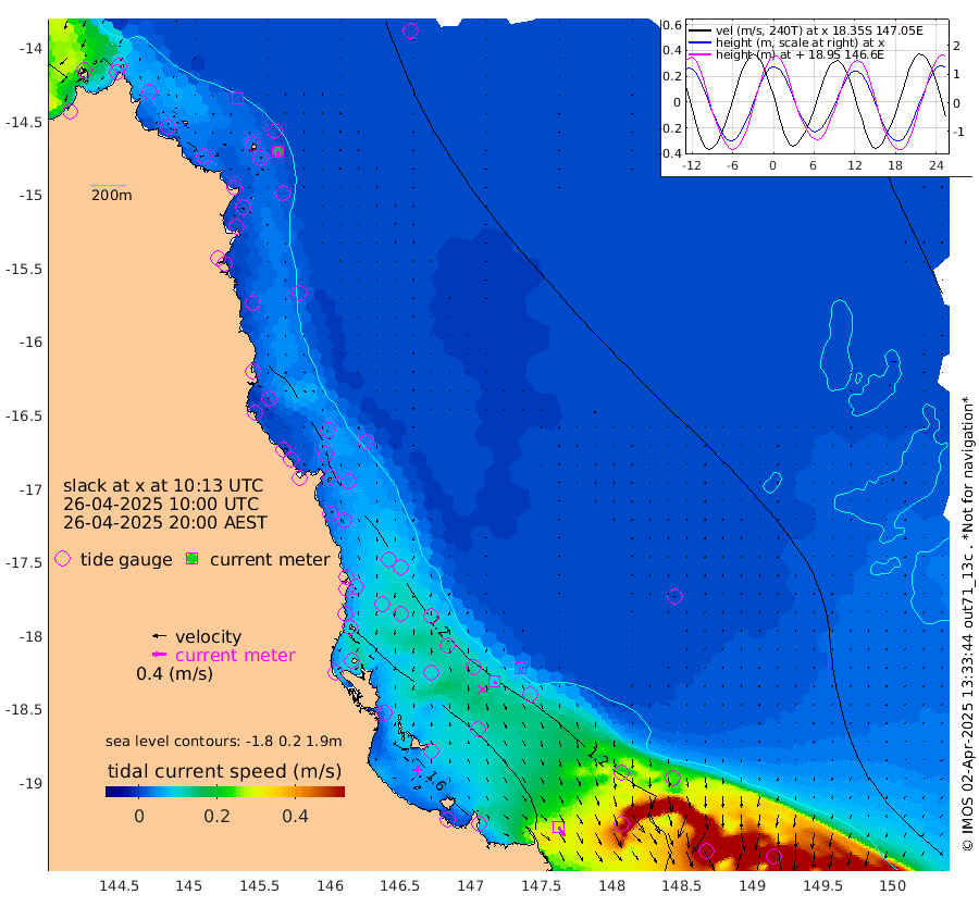 1cm/s 124T +11cm/s rms + 4cm/s -61T. GBRLSL 354m 16cm/s -180T +15cm/s rms + 2cm/s -84T. GBRLSH 32m 9cm/s 158T +15cm/s rms + 5cm/s -155T. GBRPPS 72m 4cm/s 179T +17cm/s rms + 13cm/s 115T. GBRMYR 223m 32cm/s 147T +18cm/s rms + 0cm/s -9T. NRSYON 29m 92cm Osprey Reef - West 111cm Stanley Island 95cm Pipon Islands 98cm Cape Melville 110cm Munro Reef 110cm Leggatt Island 124cm Normanby River 105cm Carter Reef 101cm Lizard Island (QLD) 104cm East Petherbridge Island 96cm North Direction Island 111cm Cape Flattery 102cm Ribbon Reef No.9 104cm Low Wooded Island 93cm Cape Bedford 55cm Endeavour River North 105cm Cooktown 99cm Cruiser Passage 107cm East Hope Island 91cm Bailay Creek 99cm Low Islets 111cm Port Douglas 112cm Palm Cove 108cm Yorkeys Knob 101cm Michaelmas Cay 94cm Euston Reef 114cm Cairns 106cm Green Island 112cm Fitzroy Island 107cm Sudbury Cay 104cm High Island 98cm Russell Island 109cm Peart Reef 104cm Nathan Reef 113cm Mourilyan Harbour 115cm Cowley Beach 110cm North Barnard Island 113cm Eddy Reef 146cm Beaver Reef 109cm Unnamed Reef No. 1 96cm Flinders Reef 121cm Clump Point 126cm Dunk Island 103cm Barnett Patches 130cm Goold Island 142cm Cardwell 122cm Britomart Reef 103cm Pith Reef 104cm Dip Reef 135cm Lucinda (Offshore) 120cm John Brewer Reef 136cm Albino Rock 109cm Shrimp Reef 105cm Jaguar Reef 144cm Townsville 135cm Cape Ferguson 112cm Stanley Reef 107cm Wallaby Reef 111cm Kennedy Reef