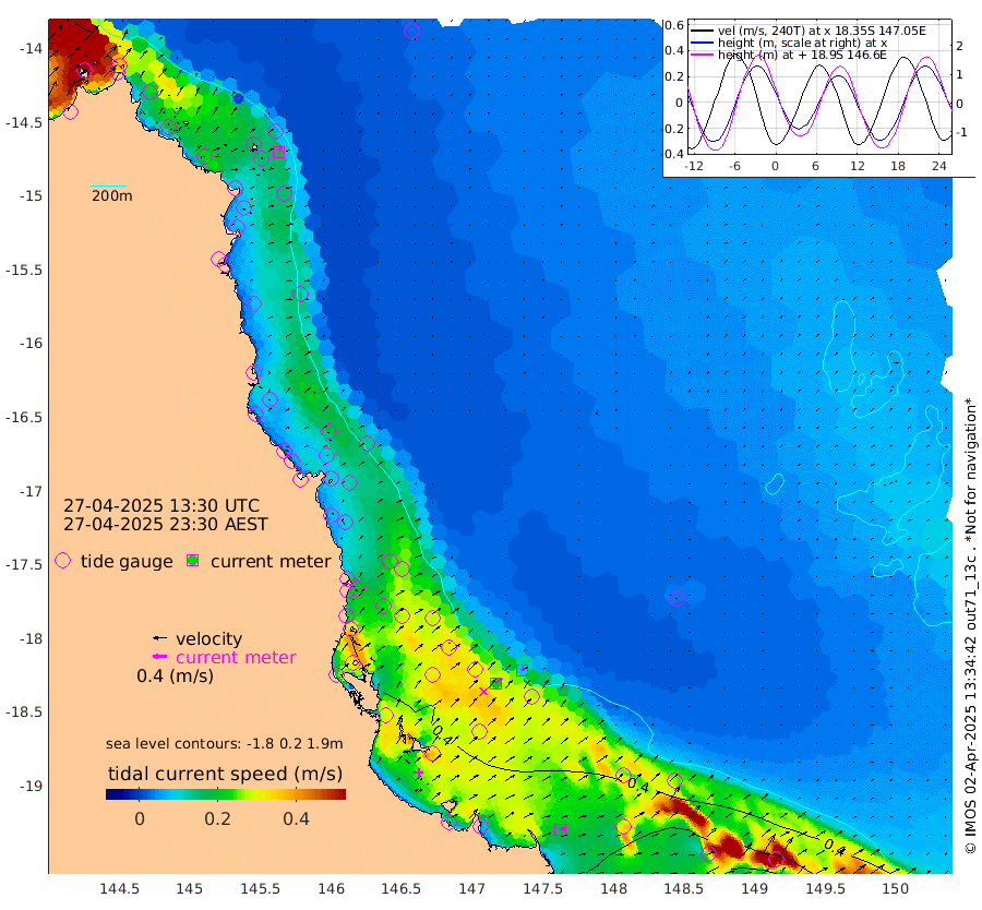 1cm/s -47T +11cm/s rms + 4cm/s -61T. GBRLSL 354m 20cm/s 24T +15cm/s rms + 2cm/s -84T. GBRLSH 32m 22cm/s 48T +15cm/s rms + 5cm/s -155T. GBRPPS 72m 8cm/s 45T +17cm/s rms + 13cm/s 115T. GBRMYR 223m 17cm/s 79T +18cm/s rms + 0cm/s -9T. NRSYON 29m 33cm Osprey Reef - West 48cm Stanley Island 34cm Pipon Islands 45cm Cape Melville 49cm Munro Reef 48cm Leggatt Island 50cm Normanby River 47cm Carter Reef 41cm Lizard Island (QLD) 42cm East Petherbridge Island 38cm North Direction Island 44cm Cape Flattery 38cm Ribbon Reef No.9 37cm Low Wooded Island 36cm Cape Bedford 23cm Endeavour River North 39cm Cooktown 33cm Cruiser Passage 34cm East Hope Island 45cm Bailay Creek 35cm Low Islets 39cm Port Douglas 34cm Palm Cove 33cm Yorkeys Knob 41cm Michaelmas Cay 22cm Euston Reef 41cm Cairns 28cm Green Island 32cm Fitzroy Island 36cm Sudbury Cay 32cm High Island 18cm Russell Island 32cm Peart Reef 30cm Nathan Reef 43cm Mourilyan Harbour 38cm Cowley Beach 60cm North Barnard Island 43cm Eddy Reef 54cm Beaver Reef 36cm Unnamed Reef No. 1 27cm Flinders Reef 43cm Clump Point 47cm Dunk Island 36cm Barnett Patches 46cm Goold Island 63cm Cardwell 32cm Britomart Reef 34cm Pith Reef 33cm Dip Reef 50cm Lucinda (Offshore) 49cm John Brewer Reef 46cm Albino Rock 45cm Shrimp Reef 36cm Jaguar Reef 50cm Townsville 47cm Cape Ferguson 69cm Stanley Reef 80cm Wallaby Reef 64cm Kennedy Reef