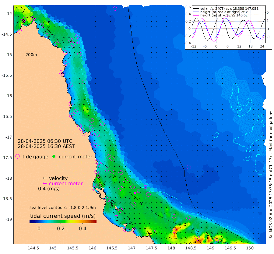 2cm/s 108T +11cm/s rms + 4cm/s -61T. GBRLSL 354m 8cm/s -141T +15cm/s rms + 2cm/s -84T. GBRLSH 32m 16cm/s -113T +15cm/s rms + 5cm/s -155T. GBRPPS 72m 4cm/s -113T +17cm/s rms + 13cm/s 115T. GBRMYR 223m 24cm/s -60T +18cm/s rms + 0cm/s -9T. NRSYON 29m -77cm Osprey Reef - West -96cm Stanley Island -80cm Pipon Islands -88cm Cape Melville -96cm Munro Reef -98cm Leggatt Island -112cm Normanby River -90cm Carter Reef -86cm Lizard Island (QLD) -91cm East Petherbridge Island -82cm North Direction Island -94cm Cape Flattery -86cm Ribbon Reef No.9 -97cm Low Wooded Island -79cm Cape Bedford -51cm Endeavour River North -88cm Cooktown -81cm Cruiser Passage -81cm East Hope Island -88cm Bailay Creek -83cm Low Islets -90cm Port Douglas -89cm Palm Cove -86cm Yorkeys Knob -84cm Michaelmas Cay -59cm Euston Reef -94cm Cairns -76cm Green Island -82cm Fitzroy Island -86cm Sudbury Cay -82cm High Island -66cm Russell Island -85cm Peart Reef -81cm Nathan Reef -94cm Mourilyan Harbour -91cm Cowley Beach -105cm North Barnard Island -97cm Eddy Reef -124cm Beaver Reef -86cm Unnamed Reef No. 1 -71cm Flinders Reef -99cm Clump Point -105cm Dunk Island -85cm Barnett Patches -106cm Goold Island -126cm Cardwell -91cm Britomart Reef -81cm Pith Reef -86cm Dip Reef -111cm Lucinda (Offshore) -102cm John Brewer Reef -109cm Albino Rock -90cm Shrimp Reef -77cm Jaguar Reef -116cm Townsville -107cm Cape Ferguson -113cm Stanley Reef -112cm Wallaby Reef -103cm Kennedy Reef