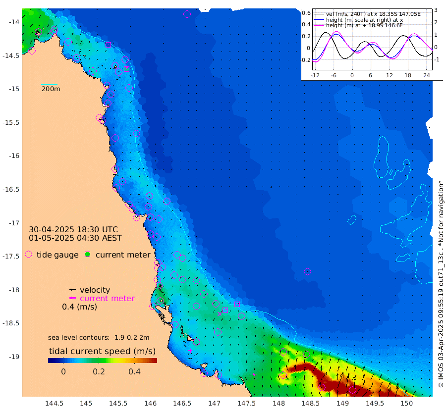 1cm/s -5T +11cm/s rms + 4cm/s -61T. GBRLSL 354m 13cm/s 18T +15cm/s rms + 2cm/s -84T. GBRLSH 32m 8cm/s 39T +15cm/s rms + 5cm/s -155T. GBRPPS 72m 6cm/s 38T +17cm/s rms + 13cm/s 115T. GBRMYR 223m 19cm/s -15T +18cm/s rms + 0cm/s -9T. NRSYON 29m -4cm Osprey Reef - West 6cm Stanley Island -18cm Pipon Islands 7cm Cape Melville 5cm Munro Reef 0cm Leggatt Island -9cm Normanby River 11cm Carter Reef 5cm Lizard Island (QLD) 7cm East Petherbridge Island 8cm North Direction Island 1cm Cape Flattery 0cm Ribbon Reef No.9 2cm Low Wooded Island 8cm Cape Bedford -8cm Endeavour River North 2cm Cooktown -1cm Cruiser Passage 7cm East Hope Island 8cm Bailay Creek 3cm Low Islets -2cm Port Douglas -4cm Palm Cove -3cm Yorkeys Knob 4cm Michaelmas Cay 4cm Euston Reef -2cm Cairns -1cm Green Island -4cm Fitzroy Island -1cm Sudbury Cay 2cm High Island 3cm Russell Island 1cm Peart Reef -1cm Nathan Reef -2cm Mourilyan Harbour -3cm Cowley Beach 4cm North Barnard Island -9cm Eddy Reef -3cm Beaver Reef -4cm Unnamed Reef No. 1 -1cm Flinders Reef -5cm Clump Point -4cm Dunk Island 1cm Barnett Patches -6cm Goold Island -7cm Cardwell -4cm Britomart Reef 0cm Pith Reef -5cm Dip Reef -8cm Lucinda (Offshore) 6cm John Brewer Reef -14cm Albino Rock 5cm Shrimp Reef -5cm Jaguar Reef -11cm Townsville -9cm Cape Ferguson 8cm Stanley Reef 7cm Wallaby Reef -5cm Kennedy Reef