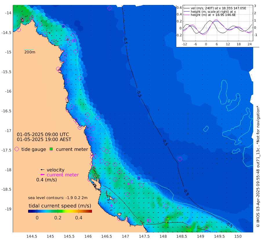 1cm/s 124T +11cm/s rms + 4cm/s -61T. GBRLSL 354m 5cm/s -131T +15cm/s rms + 2cm/s -84T. GBRLSH 32m 9cm/s -109T +15cm/s rms + 5cm/s -155T. GBRPPS 72m 2cm/s -107T +17cm/s rms + 13cm/s 115T. GBRMYR 223m 12cm/s -65T +18cm/s rms + 0cm/s -9T. NRSYON 29m -49cm Osprey Reef - West -55cm Stanley Island -60cm Pipon Islands -57cm Cape Melville -58cm Munro Reef -61cm Leggatt Island -60cm Normanby River -58cm Carter Reef -56cm Lizard Island (QLD) -50cm East Petherbridge Island -48cm North Direction Island -54cm Cape Flattery -50cm Ribbon Reef No.9 -58cm Low Wooded Island -45cm Cape Bedford -26cm Endeavour River North -54cm Cooktown -49cm Cruiser Passage -51cm East Hope Island -52cm Bailay Creek -52cm Low Islets -56cm Port Douglas -56cm Palm Cove -57cm Yorkeys Knob -50cm Michaelmas Cay -31cm Euston Reef -58cm Cairns -46cm Green Island -55cm Fitzroy Island -53cm Sudbury Cay -57cm High Island -38cm Russell Island -52cm Peart Reef -54cm Nathan Reef -58cm Mourilyan Harbour -53cm Cowley Beach -65cm North Barnard Island -58cm Eddy Reef -74cm Beaver Reef -55cm Unnamed Reef No. 1 -43cm Flinders Reef -60cm Clump Point -64cm Dunk Island -53cm Barnett Patches -65cm Goold Island -74cm Cardwell -59cm Britomart Reef -50cm Pith Reef -53cm Dip Reef -67cm Lucinda (Offshore) -63cm John Brewer Reef -62cm Albino Rock -57cm Shrimp Reef -48cm Jaguar Reef -69cm Townsville -65cm Cape Ferguson -72cm Stanley Reef -69cm Wallaby Reef -70cm Kennedy Reef