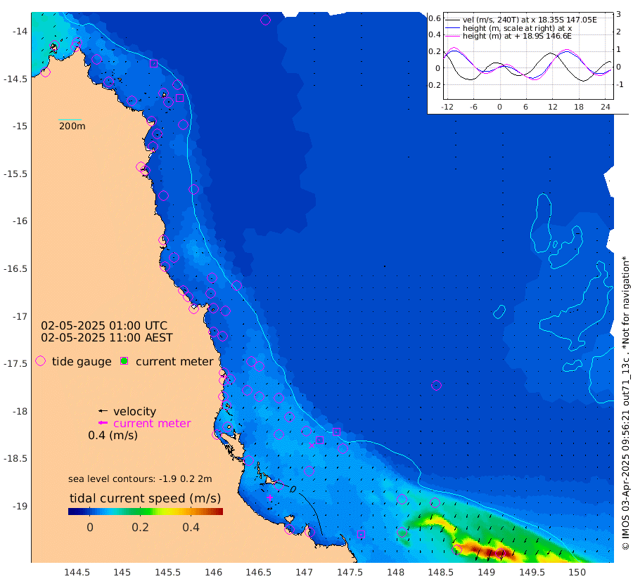 1cm/s 133T +11cm/s rms + 4cm/s -61T. GBRLSL 354m 1cm/s -161T +15cm/s rms + 2cm/s -84T. GBRLSH 32m 3cm/s -121T +15cm/s rms + 5cm/s -155T. GBRPPS 72m 3cm/s -127T +17cm/s rms + 13cm/s 115T. GBRMYR 223m 4cm/s -169T +18cm/s rms + 0cm/s -9T. NRSYON 29m -10cm Osprey Reef - West -21cm Stanley Island 1cm Pipon Islands -16cm Cape Melville -18cm Munro Reef -14cm Leggatt Island -17cm Normanby River -19cm Carter Reef -19cm Lizard Island (QLD) -19cm East Petherbridge Island -20cm North Direction Island -15cm Cape Flattery -15cm Ribbon Reef No.9 -14cm Low Wooded Island -19cm Cape Bedford -14cm Endeavour River North -16cm Cooktown -15cm Cruiser Passage -20cm East Hope Island -21cm Bailay Creek -15cm Low Islets -15cm Port Douglas -13cm Palm Cove -17cm Yorkeys Knob -19cm Michaelmas Cay -16cm Euston Reef -14cm Cairns -19cm Green Island -13cm Fitzroy Island -16cm Sudbury Cay -18cm High Island -22cm Russell Island -20cm Peart Reef -16cm Nathan Reef -15cm Mourilyan Harbour -18cm Cowley Beach -26cm North Barnard Island -6cm Eddy Reef -21cm Beaver Reef -14cm Unnamed Reef No. 1 -15cm Flinders Reef -15cm Clump Point -19cm Dunk Island -22cm Barnett Patches -18cm Goold Island -16cm Cardwell -16cm Britomart Reef -17cm Pith Reef -12cm Dip Reef -16cm Lucinda (Offshore) -24cm John Brewer Reef -12cm Albino Rock -22cm Shrimp Reef -16cm Jaguar Reef -16cm Townsville -17cm Cape Ferguson -26cm Stanley Reef -27cm Wallaby Reef -10cm Kennedy Reef