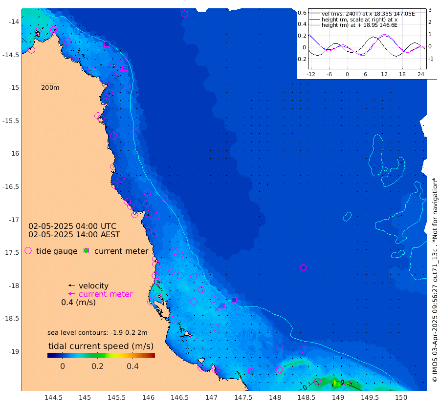0cm/s 71T +11cm/s rms + 4cm/s -61T. GBRLSL 354m 3cm/s 1T +15cm/s rms + 2cm/s -84T. GBRLSH 32m 3cm/s 40T +15cm/s rms + 5cm/s -155T. GBRPPS 72m 1cm/s 140T +17cm/s rms + 13cm/s 115T. GBRMYR 223m 5cm/s 128T +18cm/s rms + 0cm/s -9T. NRSYON 29m -24cm Osprey Reef - West -22cm Stanley Island 17cm Pipon Islands -17cm Cape Melville -24cm Munro Reef -19cm Leggatt Island -16cm Normanby River -24cm Carter Reef -21cm Lizard Island (QLD) -27cm East Petherbridge Island -25cm North Direction Island -25cm Cape Flattery -28cm Ribbon Reef No.9 -29cm Low Wooded Island -25cm Cape Bedford -20cm Endeavour River North -22cm Cooktown -28cm Cruiser Passage -28cm East Hope Island -21cm Bailay Creek -23cm Low Islets -21cm Port Douglas -22cm Palm Cove -20cm Yorkeys Knob -24cm Michaelmas Cay -32cm Euston Reef -21cm Cairns -26cm Green Island -17cm Fitzroy Island -25cm Sudbury Cay -18cm High Island -26cm Russell Island -22cm Peart Reef -20cm Nathan Reef -21cm Mourilyan Harbour -21cm Cowley Beach -12cm North Barnard Island -25cm Eddy Reef -30cm Beaver Reef -23cm Unnamed Reef No. 1 -30cm Flinders Reef -19cm Clump Point -16cm Dunk Island -25cm Barnett Patches -18cm Goold Island -14cm Cardwell -18cm Britomart Reef -26cm Pith Reef -29cm Dip Reef -16cm Lucinda (Offshore) -16cm John Brewer Reef -20cm Albino Rock -24cm Shrimp Reef -22cm Jaguar Reef -15cm Townsville -16cm Cape Ferguson -13cm Stanley Reef -14cm Wallaby Reef -9cm Kennedy Reef