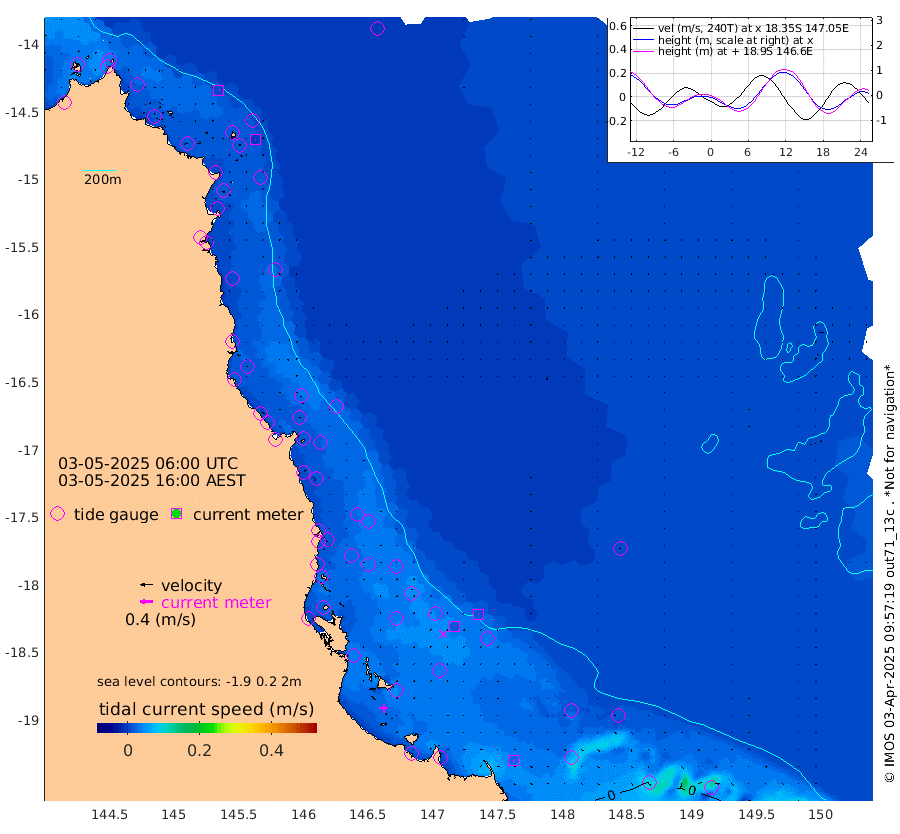1cm/s 94T +11cm/s rms + 4cm/s -61T. GBRLSL 354m 0cm/s -126T +15cm/s rms + 2cm/s -84T. GBRLSH 32m 1cm/s 54T +15cm/s rms + 5cm/s -155T. GBRPPS 72m 2cm/s 119T +17cm/s rms + 13cm/s 115T. GBRMYR 223m 2cm/s 136T +18cm/s rms + 0cm/s -9T. NRSYON 29m -21cm Osprey Reef - West -12cm Stanley Island 15cm Pipon Islands -12cm Cape Melville -18cm Munro Reef -15cm Leggatt Island -8cm Normanby River -17cm Carter Reef -15cm Lizard Island (QLD) -17cm East Petherbridge Island -16cm North Direction Island -18cm Cape Flattery -23cm Ribbon Reef No.9 -25cm Low Wooded Island -16cm Cape Bedford -18cm Endeavour River North -16cm Cooktown -23cm Cruiser Passage -21cm East Hope Island -16cm Bailay Creek -17cm Low Islets -15cm Port Douglas -16cm Palm Cove -14cm Yorkeys Knob -17cm Michaelmas Cay -23cm Euston Reef -15cm Cairns -17cm Green Island -13cm Fitzroy Island -19cm Sudbury Cay -12cm High Island -13cm Russell Island -12cm Peart Reef -14cm Nathan Reef -15cm Mourilyan Harbour -12cm Cowley Beach -5cm North Barnard Island -25cm Eddy Reef -23cm Beaver Reef -19cm Unnamed Reef No. 1 -23cm Flinders Reef -13cm Clump Point -9cm Dunk Island -18cm Barnett Patches -10cm Goold Island -7cm Cardwell -10cm Britomart Reef -21cm Pith Reef -27cm Dip Reef -9cm Lucinda (Offshore) -5cm John Brewer Reef -15cm Albino Rock -18cm Shrimp Reef -17cm Jaguar Reef -7cm Townsville -8cm Cape Ferguson -7cm Stanley Reef -9cm Wallaby Reef -10cm Kennedy Reef