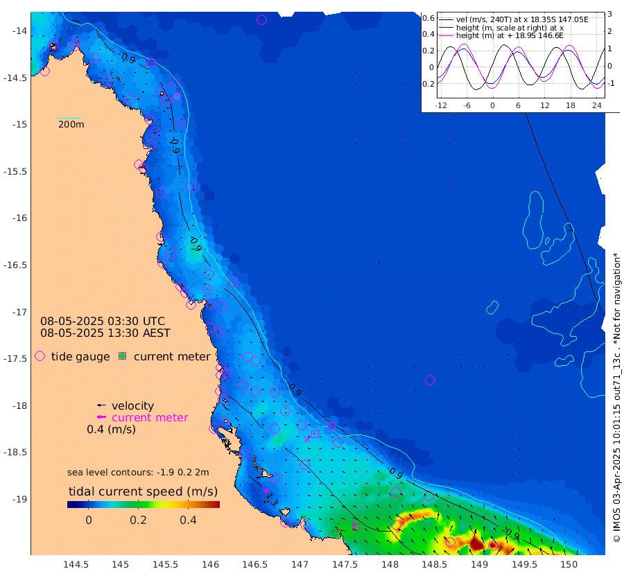 1cm/s 95T +11cm/s rms + 4cm/s -61T. GBRLSL 354m 6cm/s -1T +15cm/s rms + 2cm/s -84T. GBRLSH 32m 7cm/s -71T +15cm/s rms + 5cm/s -155T. GBRPPS 72m 3cm/s -45T +17cm/s rms + 13cm/s 115T. GBRMYR 223m 20cm/s -45T +18cm/s rms + 0cm/s -9T. NRSYON 29m -82cm Osprey Reef - West -98cm Stanley Island -75cm Pipon Islands -88cm Cape Melville -93cm Munro Reef -95cm Leggatt Island -112cm Normanby River -87cm Carter Reef -88cm Lizard Island (QLD) -98cm East Petherbridge Island -90cm North Direction Island -95cm Cape Flattery -91cm Ribbon Reef No.9 -100cm Low Wooded Island -87cm Cape Bedford -54cm Endeavour River North -91cm Cooktown -88cm Cruiser Passage -83cm East Hope Island -85cm Bailay Creek -84cm Low Islets -94cm Port Douglas -95cm Palm Cove -93cm Yorkeys Knob -87cm Michaelmas Cay -74cm Euston Reef -97cm Cairns -87cm Green Island -80cm Fitzroy Island -88cm Sudbury Cay -86cm High Island -80cm Russell Island -94cm Peart Reef -87cm Nathan Reef -96cm Mourilyan Harbour -99cm Cowley Beach -92cm North Barnard Island -97cm Eddy Reef -123cm Beaver Reef -93cm Unnamed Reef No. 1 -82cm Flinders Reef -102cm Clump Point -106cm Dunk Island -93cm Barnett Patches -110cm Goold Island -121cm Cardwell -101cm Britomart Reef -87cm Pith Reef -93cm Dip Reef -114cm Lucinda (Offshore) -100cm John Brewer Reef -114cm Albino Rock -91cm Shrimp Reef -83cm Jaguar Reef -121cm Townsville -114cm Cape Ferguson -107cm Stanley Reef -103cm Wallaby Reef -100cm Kennedy Reef