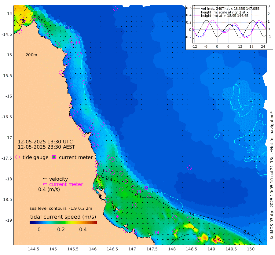 1cm/s -62T +11cm/s rms + 4cm/s -61T. GBRLSL 354m 9cm/s 27T +15cm/s rms + 2cm/s -84T. GBRLSH 32m 12cm/s 53T +15cm/s rms + 5cm/s -155T. GBRPPS 72m 4cm/s 48T +17cm/s rms + 13cm/s 115T. GBRMYR 223m 12cm/s 95T +18cm/s rms + 0cm/s -9T. NRSYON 29m 46cm Osprey Reef - West 45cm Stanley Island 30cm Pipon Islands 42cm Cape Melville 44cm Munro Reef 47cm Leggatt Island 49cm Normanby River 39cm Carter Reef 42cm Lizard Island (QLD) 46cm East Petherbridge Island 44cm North Direction Island 41cm Cape Flattery 44cm Ribbon Reef No.9 49cm Low Wooded Island 42cm Cape Bedford 42cm Endeavour River North 42cm Cooktown 43cm Cruiser Passage 32cm East Hope Island 47cm Bailay Creek 37cm Low Islets 42cm Port Douglas 41cm Palm Cove 41cm Yorkeys Knob 43cm Michaelmas Cay 31cm Euston Reef 44cm Cairns 36cm Green Island 22cm Fitzroy Island 39cm Sudbury Cay 39cm High Island 27cm Russell Island 37cm Peart Reef 35cm Nathan Reef 46cm Mourilyan Harbour 43cm Cowley Beach 48cm North Barnard Island 51cm Eddy Reef 56cm Beaver Reef 45cm Unnamed Reef No. 1 34cm Flinders Reef 46cm Clump Point 47cm Dunk Island 44cm Barnett Patches 50cm Goold Island 57cm Cardwell 37cm Britomart Reef 42cm Pith Reef 46cm Dip Reef 51cm Lucinda (Offshore) 39cm John Brewer Reef 51cm Albino Rock 44cm Shrimp Reef 43cm Jaguar Reef 51cm Townsville 50cm Cape Ferguson 68cm Stanley Reef 72cm Wallaby Reef 68cm Kennedy Reef