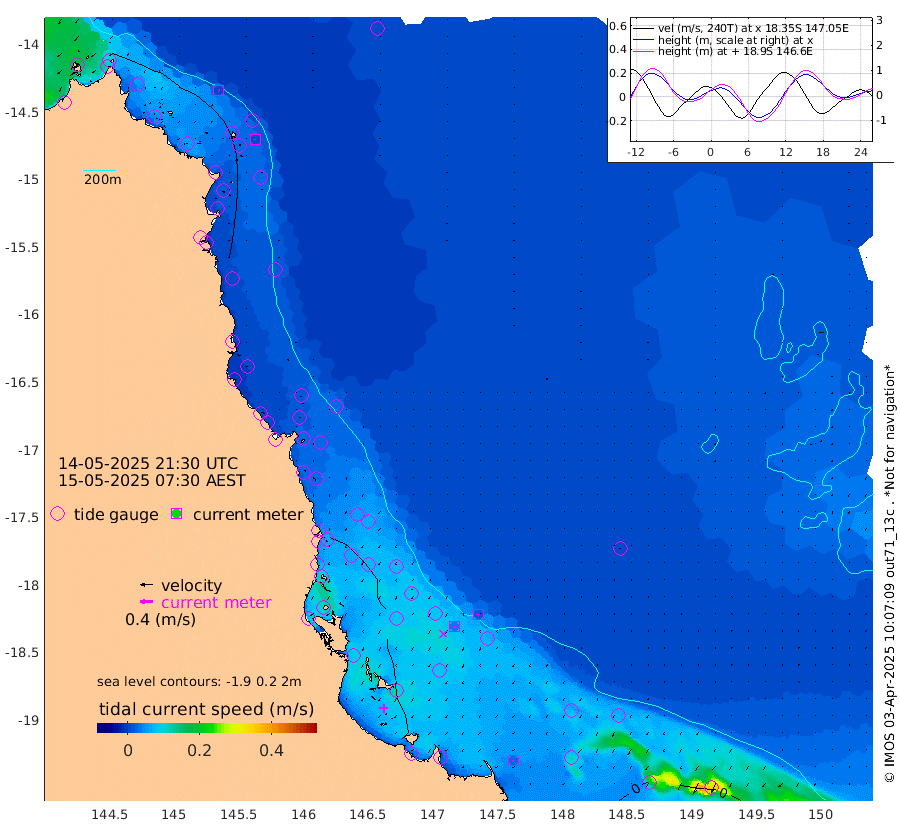 1cm/s 133T +11cm/s rms + 4cm/s -61T. GBRLSL 354m 1cm/s -139T +15cm/s rms + 2cm/s -84T. GBRLSH 32m 4cm/s -158T +15cm/s rms + 5cm/s -155T. GBRPPS 72m 2cm/s -155T +17cm/s rms + 13cm/s 115T. GBRMYR 223m 3cm/s -148T +18cm/s rms + 0cm/s -9T. NRSYON 29m 16cm Osprey Reef - West 20cm Stanley Island 7cm Pipon Islands 14cm Cape Melville 22cm Munro Reef 21cm Leggatt Island 24cm Normanby River 19cm Carter Reef 18cm Lizard Island (QLD) 19cm East Petherbridge Island 16cm North Direction Island 22cm Cape Flattery 21cm Ribbon Reef No.9 27cm Low Wooded Island 16cm Cape Bedford 9cm Endeavour River North 20cm Cooktown 21cm Cruiser Passage 24cm East Hope Island 16cm Bailay Creek 23cm Low Islets 20cm Port Douglas 22cm Palm Cove 23cm Yorkeys Knob 16cm Michaelmas Cay 12cm Euston Reef 21cm Cairns 21cm Green Island 23cm Fitzroy Island 21cm Sudbury Cay 21cm High Island 24cm Russell Island 25cm Peart Reef 23cm Nathan Reef 19cm Mourilyan Harbour 18cm Cowley Beach 16cm North Barnard Island 18cm Eddy Reef 30cm Beaver Reef 18cm Unnamed Reef No. 1 18cm Flinders Reef 20cm Clump Point 22cm Dunk Island 18cm Barnett Patches 21cm Goold Island 21cm Cardwell 23cm Britomart Reef 14cm Pith Reef 20cm Dip Reef 21cm Lucinda (Offshore) 24cm John Brewer Reef 21cm Albino Rock 14cm Shrimp Reef 9cm Jaguar Reef 21cm Townsville 19cm Cape Ferguson 6cm Stanley Reef -5cm Wallaby Reef -3cm Kennedy Reef