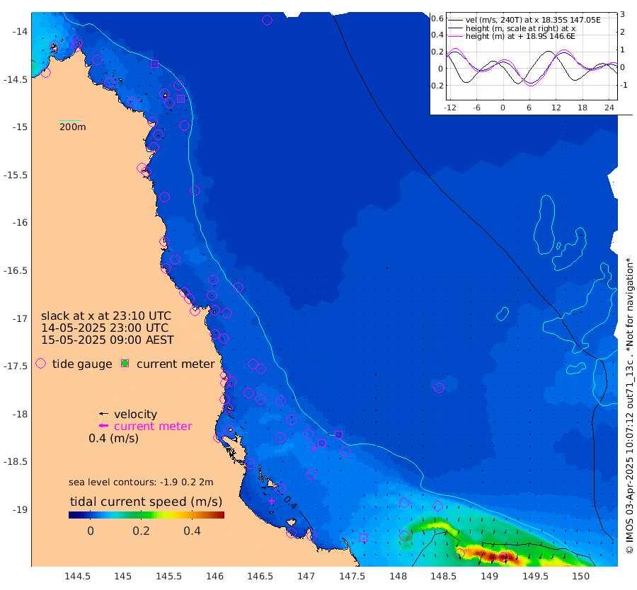 1cm/s 141T +11cm/s rms + 4cm/s -61T. GBRLSL 354m 2cm/s 172T +15cm/s rms + 2cm/s -84T. GBRLSH 32m 2cm/s 127T +15cm/s rms + 5cm/s -155T. GBRPPS 72m 1cm/s -159T +17cm/s rms + 13cm/s 115T. GBRMYR 223m 8cm/s 146T +18cm/s rms + 0cm/s -9T. NRSYON 29m 16cm Osprey Reef - West 23cm Stanley Island 20cm Pipon Islands 17cm Cape Melville 24cm Munro Reef 24cm Leggatt Island 31cm Normanby River 17cm Carter Reef 18cm Lizard Island (QLD) 21cm East Petherbridge Island 16cm North Direction Island 25cm Cape Flattery 19cm Ribbon Reef No.9 22cm Low Wooded Island 15cm Cape Bedford 10cm Endeavour River North 21cm Cooktown 17cm Cruiser Passage 23cm East Hope Island 17cm Bailay Creek 24cm Low Islets 22cm Port Douglas 21cm Palm Cove 19cm Yorkeys Knob 16cm Michaelmas Cay 13cm Euston Reef 23cm Cairns 17cm Green Island 27cm Fitzroy Island 22cm Sudbury Cay 18cm High Island 17cm Russell Island 21cm Peart Reef 20cm Nathan Reef 22cm Mourilyan Harbour 20cm Cowley Beach 23cm North Barnard Island 26cm Eddy Reef 33cm Beaver Reef 18cm Unnamed Reef No. 1 14cm Flinders Reef 24cm Clump Point 24cm Dunk Island 17cm Barnett Patches 24cm Goold Island 32cm Cardwell 20cm Britomart Reef 17cm Pith Reef 18cm Dip Reef 27cm Lucinda (Offshore) 25cm John Brewer Reef 30cm Albino Rock 17cm Shrimp Reef 13cm Jaguar Reef 29cm Townsville 25cm Cape Ferguson 12cm Stanley Reef 8cm Wallaby Reef 13cm Kennedy Reef