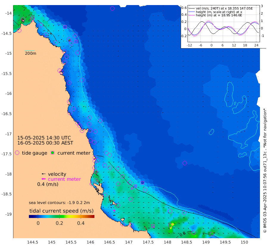 2cm/s -62T +11cm/s rms + 4cm/s -61T. GBRLSL 354m 4cm/s 45T +15cm/s rms + 2cm/s -84T. GBRLSH 32m 7cm/s 76T +15cm/s rms + 5cm/s -155T. GBRPPS 72m 1cm/s 54T +17cm/s rms + 13cm/s 115T. GBRMYR 223m 14cm/s 123T +18cm/s rms + 0cm/s -9T. NRSYON 29m 55cm Osprey Reef - West 61cm Stanley Island 42cm Pipon Islands 61cm Cape Melville 63cm Munro Reef 61cm Leggatt Island 59cm Normanby River 63cm Carter Reef 60cm Lizard Island (QLD) 62cm East Petherbridge Island 60cm North Direction Island 63cm Cape Flattery 59cm Ribbon Reef No.9 66cm Low Wooded Island 58cm Cape Bedford 36cm Endeavour River North 60cm Cooktown 58cm Cruiser Passage 62cm East Hope Island 63cm Bailay Creek 54cm Low Islets 60cm Port Douglas 58cm Palm Cove 54cm Yorkeys Knob 61cm Michaelmas Cay 60cm Euston Reef 62cm Cairns 55cm Green Island 54cm Fitzroy Island 60cm Sudbury Cay 57cm High Island 45cm Russell Island 51cm Peart Reef 50cm Nathan Reef 63cm Mourilyan Harbour 62cm Cowley Beach 65cm North Barnard Island 69cm Eddy Reef 80cm Beaver Reef 61cm Unnamed Reef No. 1 54cm Flinders Reef 65cm Clump Point 64cm Dunk Island 62cm Barnett Patches 67cm Goold Island 76cm Cardwell 59cm Britomart Reef 66cm Pith Reef 62cm Dip Reef 70cm Lucinda (Offshore) 60cm John Brewer Reef 71cm Albino Rock 72cm Shrimp Reef 66cm Jaguar Reef 71cm Townsville 70cm Cape Ferguson 80cm Stanley Reef 86cm Wallaby Reef 82cm Kennedy Reef