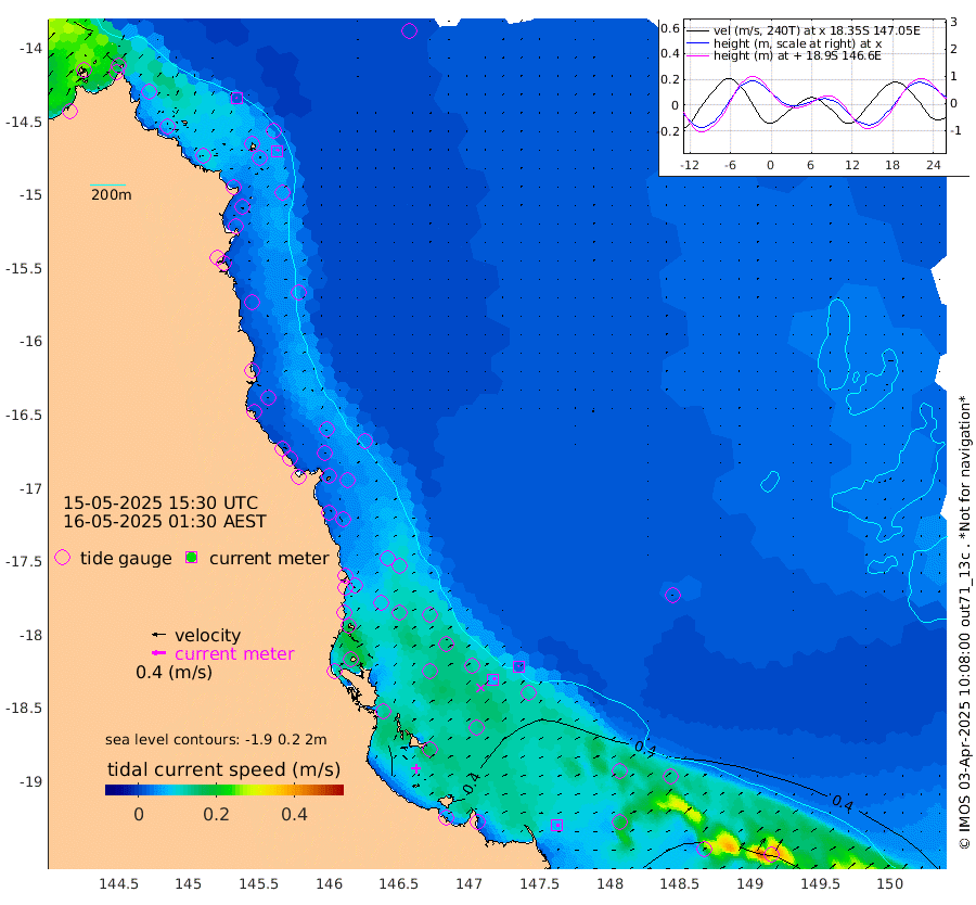 2cm/s -55T +11cm/s rms + 4cm/s -61T. GBRLSL 354m 6cm/s 33T +15cm/s rms + 2cm/s -84T. GBRLSH 32m 8cm/s 60T +15cm/s rms + 5cm/s -155T. GBRPPS 72m 3cm/s 43T +17cm/s rms + 13cm/s 115T. GBRMYR 223m 8cm/s 93T +18cm/s rms + 0cm/s -9T. NRSYON 29m 43cm Osprey Reef - West 47cm Stanley Island 29cm Pipon Islands 48cm Cape Melville 47cm Munro Reef 46cm Leggatt Island 42cm Normanby River 49cm Carter Reef 47cm Lizard Island (QLD) 50cm East Petherbridge Island 50cm North Direction Island 45cm Cape Flattery 45cm Ribbon Reef No.9 53cm Low Wooded Island 48cm Cape Bedford 29cm Endeavour River North 45cm Cooktown 44cm Cruiser Passage 46cm East Hope Island 53cm Bailay Creek 40cm Low Islets 45cm Port Douglas 43cm Palm Cove 40cm Yorkeys Knob 47cm Michaelmas Cay 46cm Euston Reef 46cm Cairns 40cm Green Island 33cm Fitzroy Island 43cm Sudbury Cay 44cm High Island 33cm Russell Island 37cm Peart Reef 36cm Nathan Reef 47cm Mourilyan Harbour 47cm Cowley Beach 49cm North Barnard Island 51cm Eddy Reef 58cm Beaver Reef 46cm Unnamed Reef No. 1 39cm Flinders Reef 47cm Clump Point 47cm Dunk Island 48cm Barnett Patches 49cm Goold Island 55cm Cardwell 43cm Britomart Reef 50cm Pith Reef 46cm Dip Reef 50cm Lucinda (Offshore) 43cm John Brewer Reef 49cm Albino Rock 55cm Shrimp Reef 49cm Jaguar Reef 51cm Townsville 51cm Cape Ferguson 68cm Stanley Reef 72cm Wallaby Reef 66cm Kennedy Reef
