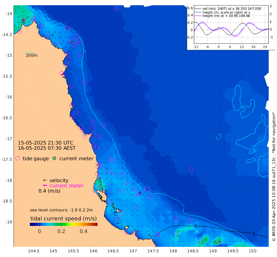 1cm/s 124T +11cm/s rms + 4cm/s -61T. GBRLSL 354m 1cm/s 2T +15cm/s rms + 2cm/s -84T. GBRLSH 32m 1cm/s -153T +15cm/s rms + 5cm/s -155T. GBRPPS 72m 0cm/s -151T +17cm/s rms + 13cm/s 115T. GBRMYR 223m 4cm/s -52T +18cm/s rms + 0cm/s -9T. NRSYON 29m 9cm Osprey Reef - West 11cm Stanley Island -2cm Pipon Islands 5cm Cape Melville 12cm Munro Reef 12cm Leggatt Island 13cm Normanby River 12cm Carter Reef 8cm Lizard Island (QLD) 10cm East Petherbridge Island 8cm North Direction Island 10cm Cape Flattery 13cm Ribbon Reef No.9 21cm Low Wooded Island 8cm Cape Bedford 4cm Endeavour River North 11cm Cooktown 14cm Cruiser Passage 12cm East Hope Island 11cm Bailay Creek 13cm Low Islets 11cm Port Douglas 13cm Palm Cove 15cm Yorkeys Knob 8cm Michaelmas Cay 3cm Euston Reef 11cm Cairns 13cm Green Island 8cm Fitzroy Island 10cm Sudbury Cay 11cm High Island 15cm Russell Island 16cm Peart Reef 14cm Nathan Reef 9cm Mourilyan Harbour 7cm Cowley Beach 4cm North Barnard Island 8cm Eddy Reef 17cm Beaver Reef 9cm Unnamed Reef No. 1 9cm Flinders Reef 9cm Clump Point 12cm Dunk Island 9cm Barnett Patches 10cm Goold Island 7cm Cardwell 13cm Britomart Reef 4cm Pith Reef 12cm Dip Reef 8cm Lucinda (Offshore) 12cm John Brewer Reef 8cm Albino Rock 3cm Shrimp Reef -1cm Jaguar Reef 7cm Townsville 6cm Cape Ferguson -1cm Stanley Reef -14cm Wallaby Reef -15cm Kennedy Reef