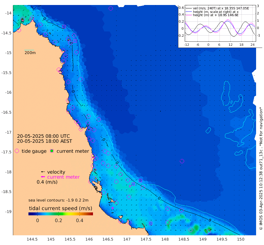 2cm/s 100T +11cm/s rms + 4cm/s -61T. GBRLSL 354m 5cm/s 14T +15cm/s rms + 2cm/s -84T. GBRLSH 32m 6cm/s 54T +15cm/s rms + 5cm/s -155T. GBRPPS 72m 3cm/s 74T +17cm/s rms + 13cm/s 115T. GBRMYR 223m 5cm/s 90T +18cm/s rms + 0cm/s -9T. NRSYON 29m -4cm Osprey Reef - West 8cm Stanley Island 6cm Pipon Islands 1cm Cape Melville 0cm Munro Reef 1cm Leggatt Island 11cm Normanby River -5cm Carter Reef -1cm Lizard Island (QLD) 10cm East Petherbridge Island 6cm North Direction Island 2cm Cape Flattery -4cm Ribbon Reef No.9 -8cm Low Wooded Island 8cm Cape Bedford 5cm Endeavour River North 0cm Cooktown -6cm Cruiser Passage -5cm East Hope Island 5cm Bailay Creek -2cm Low Islets 1cm Port Douglas -3cm Palm Cove -5cm Yorkeys Knob 1cm Michaelmas Cay 4cm Euston Reef 1cm Cairns -4cm Green Island -13cm Fitzroy Island -5cm Sudbury Cay -5cm High Island 0cm Russell Island -1cm Peart Reef -7cm Nathan Reef 1cm Mourilyan Harbour 7cm Cowley Beach 7cm North Barnard Island -1cm Eddy Reef 0cm Beaver Reef -3cm Unnamed Reef No. 1 -9cm Flinders Reef 3cm Clump Point 4cm Dunk Island -1cm Barnett Patches 5cm Goold Island 13cm Cardwell -2cm Britomart Reef -3cm Pith Reef -11cm Dip Reef 8cm Lucinda (Offshore) 3cm John Brewer Reef 7cm Albino Rock 1cm Shrimp Reef 2cm Jaguar Reef 11cm Townsville 9cm Cape Ferguson 13cm Stanley Reef 15cm Wallaby Reef 15cm Kennedy Reef