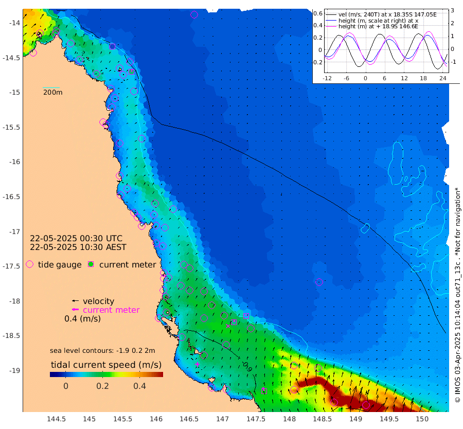 0cm/s 101T +11cm/s rms + 4cm/s -61T. GBRLSL 354m 15cm/s 13T +15cm/s rms + 2cm/s -84T. GBRLSH 32m 14cm/s 18T +15cm/s rms + 5cm/s -155T. GBRPPS 72m 7cm/s 17T +17cm/s rms + 13cm/s 115T. GBRMYR 223m 23cm/s -17T +18cm/s rms + 0cm/s -9T. NRSYON 29m -59cm Osprey Reef - West -66cm Stanley Island -54cm Pipon Islands -61cm Cape Melville -63cm Munro Reef -64cm Leggatt Island -72cm Normanby River -62cm Carter Reef -67cm Lizard Island (QLD) -62cm East Petherbridge Island -61cm North Direction Island -71cm Cape Flattery -66cm Ribbon Reef No.9 -75cm Low Wooded Island -61cm Cape Bedford -40cm Endeavour River North -68cm Cooktown -67cm Cruiser Passage -74cm East Hope Island -56cm Bailay Creek -64cm Low Islets -71cm Port Douglas -74cm Palm Cove -72cm Yorkeys Knob -66cm Michaelmas Cay -64cm Euston Reef -73cm Cairns -73cm Green Island -74cm Fitzroy Island -69cm Sudbury Cay -75cm High Island -72cm Russell Island -75cm Peart Reef -68cm Nathan Reef -72cm Mourilyan Harbour -76cm Cowley Beach -72cm North Barnard Island -68cm Eddy Reef -92cm Beaver Reef -72cm Unnamed Reef No. 1 -69cm Flinders Reef -78cm Clump Point -83cm Dunk Island -71cm Barnett Patches -86cm Goold Island -84cm Cardwell -85cm Britomart Reef -70cm Pith Reef -72cm Dip Reef -85cm Lucinda (Offshore) -81cm John Brewer Reef -85cm Albino Rock -76cm Shrimp Reef -72cm Jaguar Reef -92cm Townsville -88cm Cape Ferguson -71cm Stanley Reef -62cm Wallaby Reef -71cm Kennedy Reef
