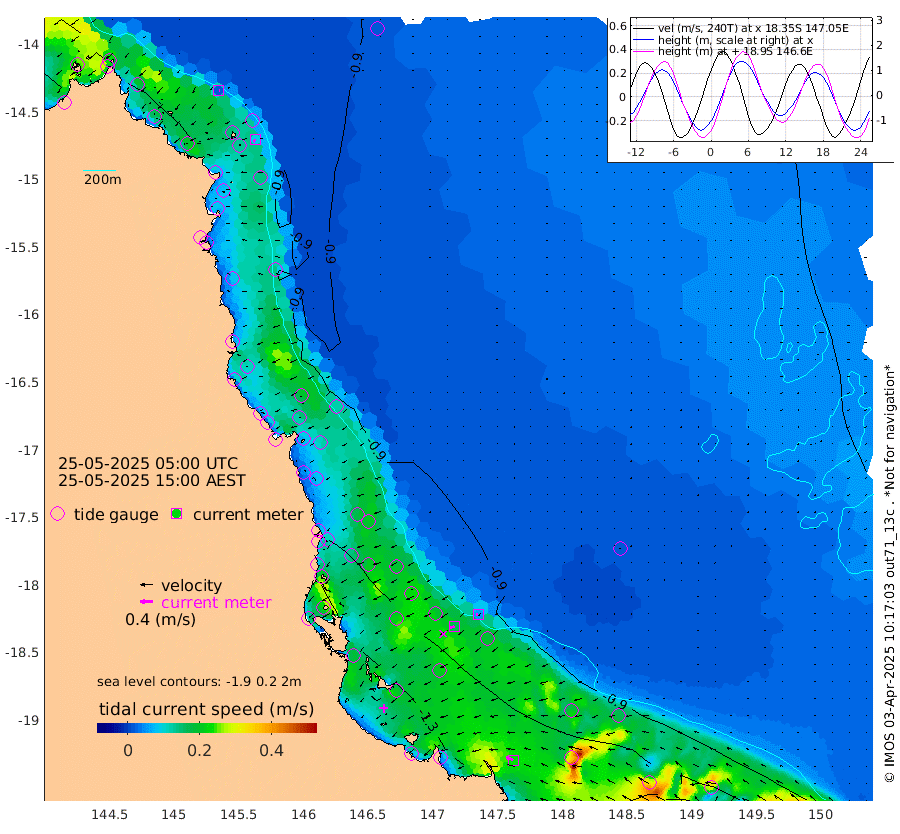 2cm/s 105T +11cm/s rms + 4cm/s -61T. GBRLSL 354m 9cm/s -143T +15cm/s rms + 2cm/s -84T. GBRLSH 32m 17cm/s -113T +15cm/s rms + 5cm/s -155T. GBRPPS 72m 5cm/s -112T +17cm/s rms + 13cm/s 115T. GBRMYR 223m 24cm/s -64T +18cm/s rms + 0cm/s -9T. NRSYON 29m -83cm Osprey Reef - West -110cm Stanley Island -81cm Pipon Islands -97cm Cape Melville -106cm Munro Reef -107cm Leggatt Island -124cm Normanby River -99cm Carter Reef -96cm Lizard Island (QLD) -106cm East Petherbridge Island -95cm North Direction Island -105cm Cape Flattery -95cm Ribbon Reef No.9 -109cm Low Wooded Island -92cm Cape Bedford -56cm Endeavour River North -98cm Cooktown -90cm Cruiser Passage -92cm East Hope Island -101cm Bailay Creek -92cm Low Islets -99cm Port Douglas -97cm Palm Cove -94cm Yorkeys Knob -93cm Michaelmas Cay -71cm Euston Reef -103cm Cairns -86cm Green Island -87cm Fitzroy Island -94cm Sudbury Cay -90cm High Island -77cm Russell Island -96cm Peart Reef -88cm Nathan Reef -103cm Mourilyan Harbour -102cm Cowley Beach -114cm North Barnard Island -104cm Eddy Reef -136cm Beaver Reef -94cm Unnamed Reef No. 1 -77cm Flinders Reef -108cm Clump Point -115cm Dunk Island -97cm Barnett Patches -116cm Goold Island -137cm Cardwell -100cm Britomart Reef -89cm Pith Reef -92cm Dip Reef -122cm Lucinda (Offshore) -114cm John Brewer Reef -120cm Albino Rock -100cm Shrimp Reef -84cm Jaguar Reef -127cm Townsville -118cm Cape Ferguson -125cm Stanley Reef -121cm Wallaby Reef -108cm Kennedy Reef